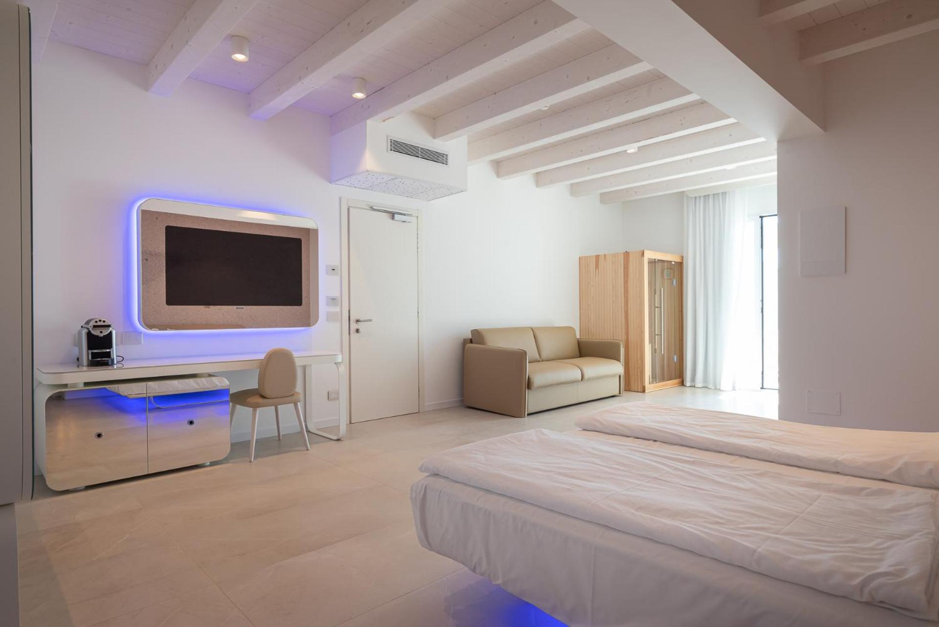 Each room at Unico Hotel Caorle is equipped with modern amenities including a satellite TV, a bathroom with a hairdryer, and a refreshing shower. Relax in comfort after a day of exploring the beach and city.