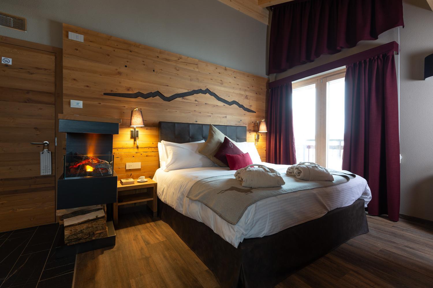 Experience comfort and style at Mont Chalet Nevada - Hotel & Spa. The rooms feature modern amenities like flat-screen TVs, safes, and free WiFi. Relax in the well-appointed rooms with cozy carpeted floors and elegant décor.