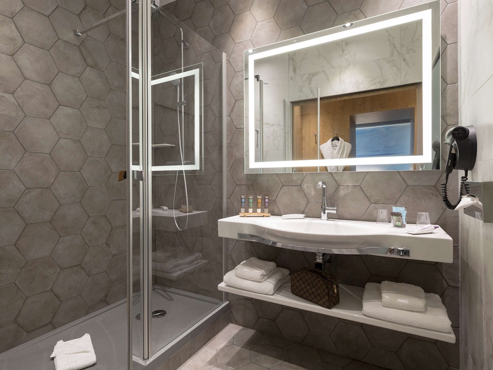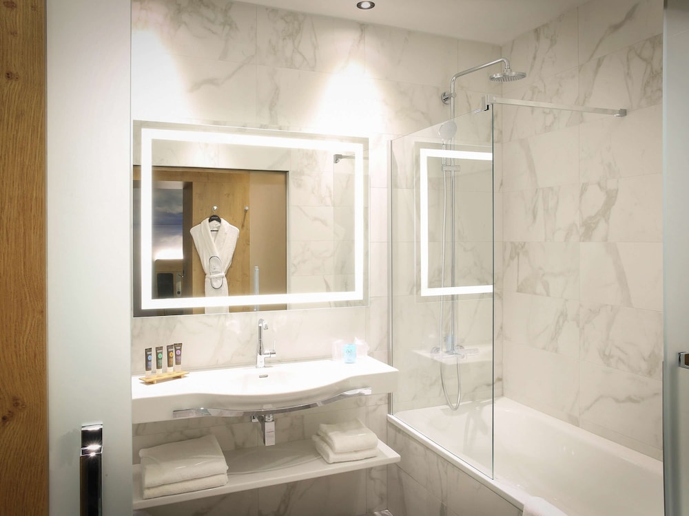 Emplacement très agréable avec parking pratique en dessous de l'hôtel. Belle chambre. Salle de bains irréprochable. Très propre. Bon restaurant, très bon petit déjeuner.