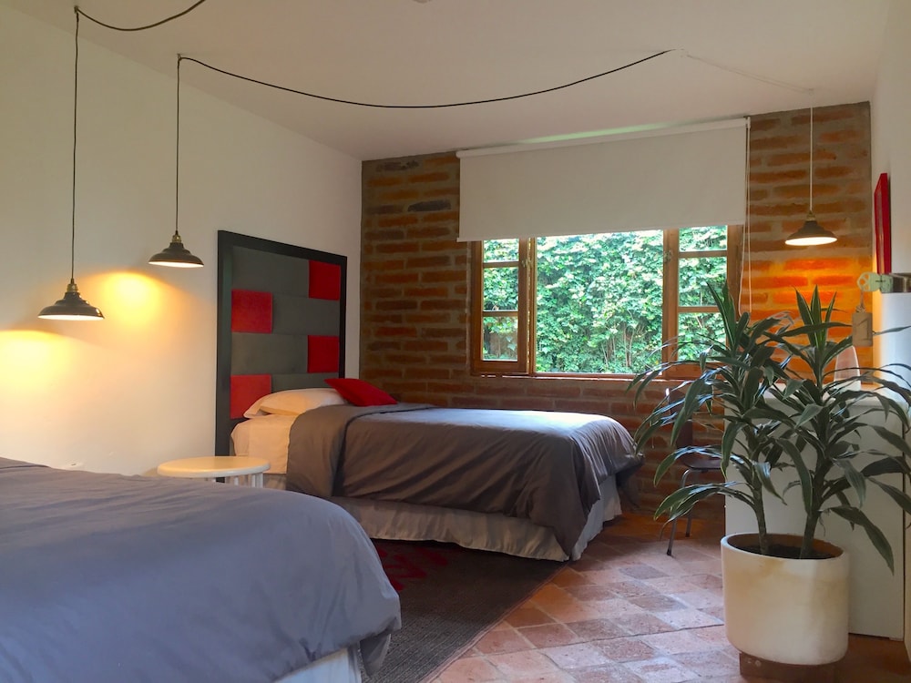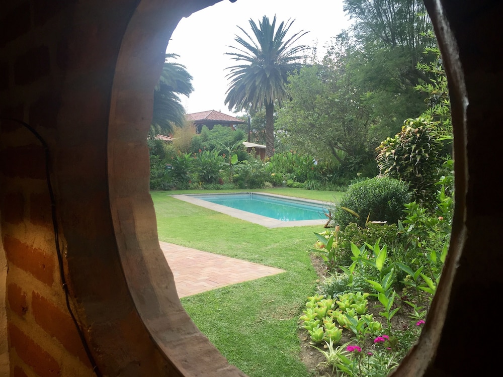 An oasis in Tumbaco. We were visiting our daughter, who is studying abroad in Quito and chose this spot which was closer to the University. What a little gem. Behind private gates, a quaint little place with wooden beam ceilings and rustic wooden accents. Very comfortable accommodations. Clean and updated. The area is very quiet and beautiful plants surround the property. Breakfast was delicious and made to order. Bread is baked fresh each day. Several restaurants are on the property to satisfy even the most picky eater in your group. A wonderful place to stay.