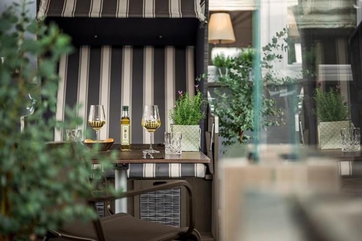 Außenbereich mit netten Strandkörben am Samstag Abend nur Raucher daher nicht nutzbar und am späteren Abend nicht mehr Nutzbar da wegen Lärmbelästigung wohl nicht zulässig,. Für eine Nacht haben wir nur ein älteres Zimmer bekommen (nicht das was im Internet angepriesen wurde), und der Internetpreis war auch nur im Internet zu bekommen vor Ort wäre das Zimmer um 30 Euro teurer gewesen. Zuerst der Versuch uns einen teuren Hotelparkplatz zu verkaufen obwohl die Parkplätze direkt daneben am Sonntag Kostenfrei sind (Anreise war am frühen Samstagabend).