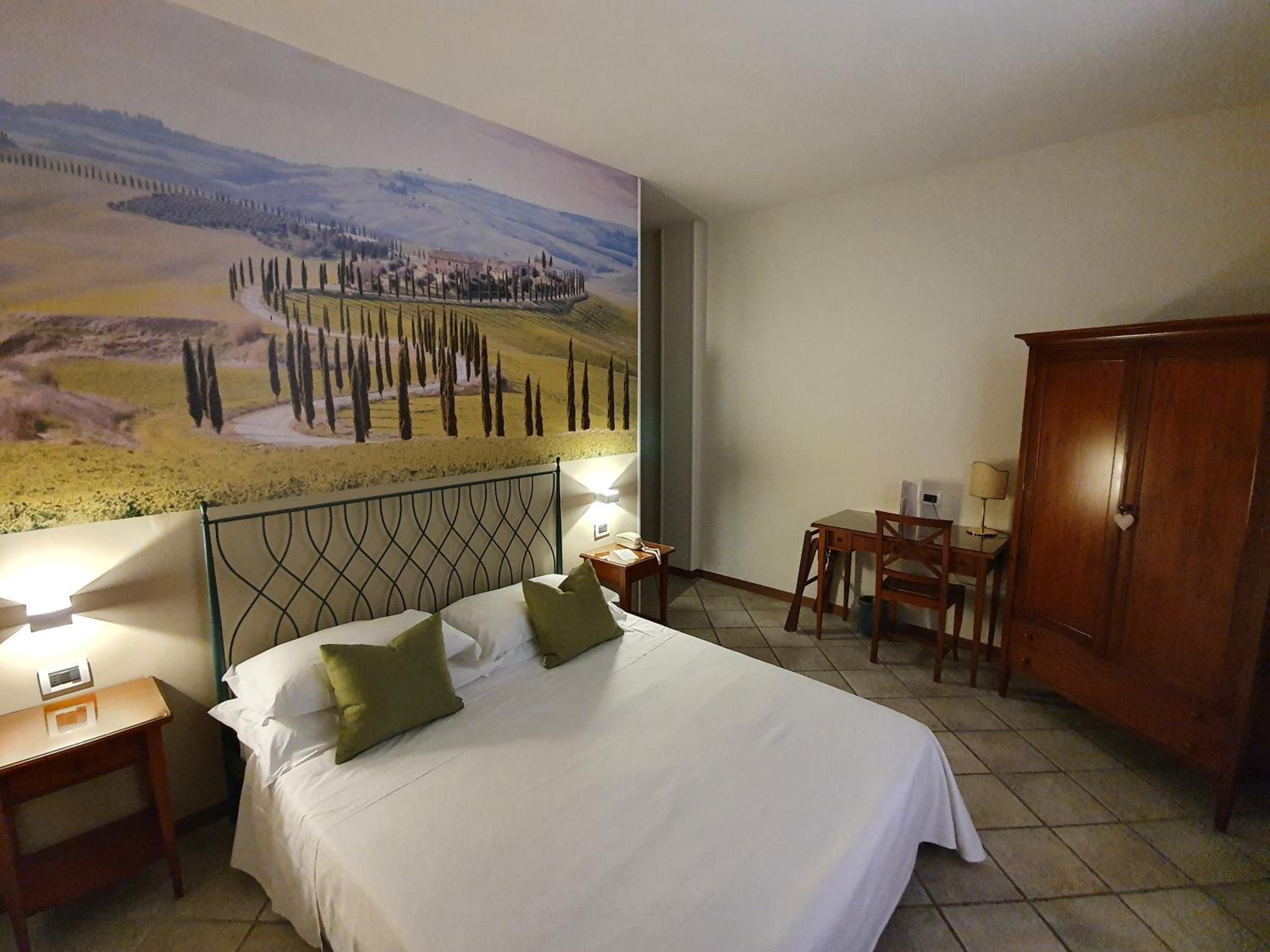The air-conditioned rooms at Hotel Le Colline blend rustic charm with modern comforts, featuring flat-screen TVs, minibars, and free Wi-Fi. Some rooms even boast balconies with stunning garden views, providing a cozy retreat for guests.