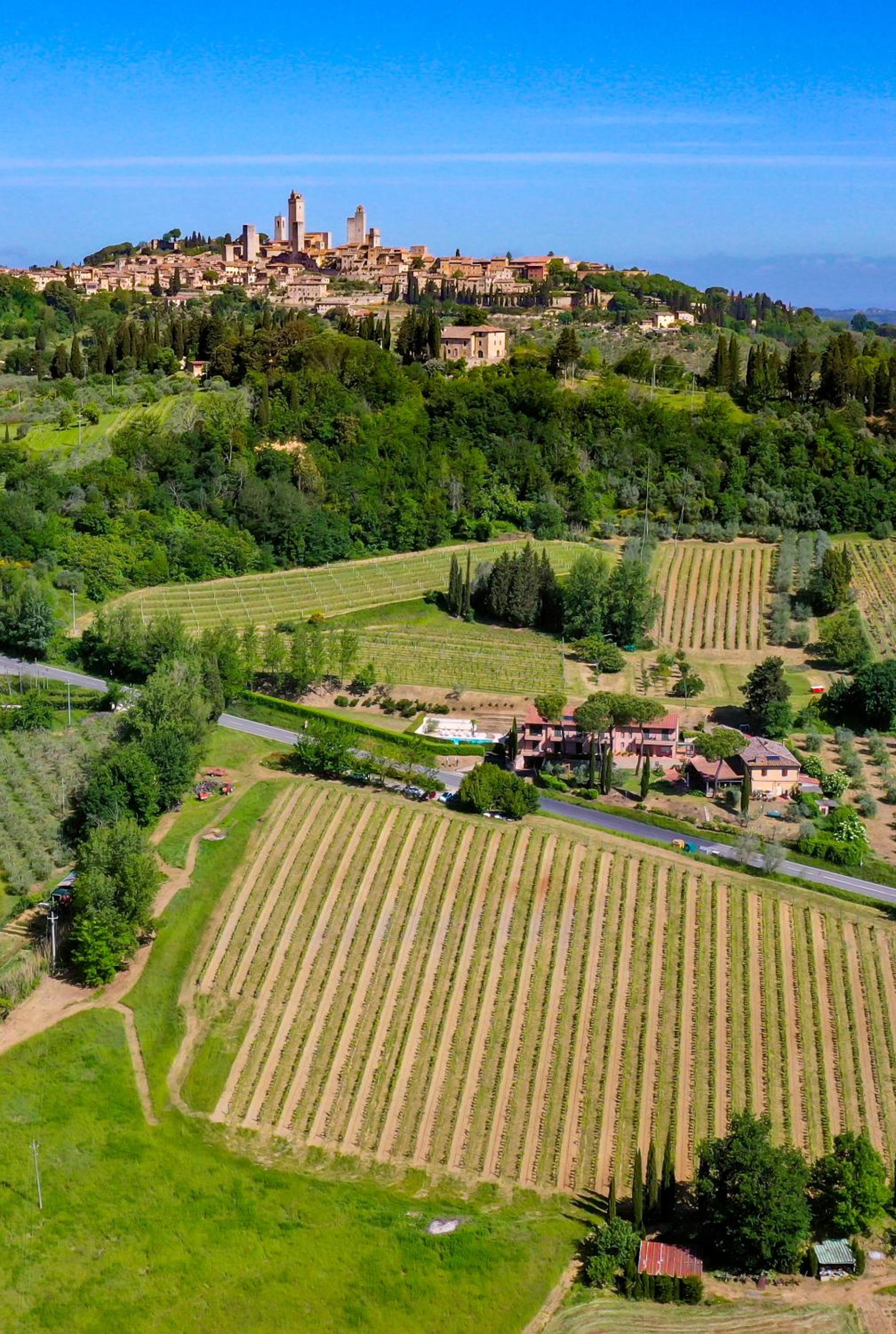 Hotel Le Colline offers a serene escape in the Tuscan countryside with its outdoor swimming pool and lush garden. Guests can unwind and soak up the sun in this picturesque setting.