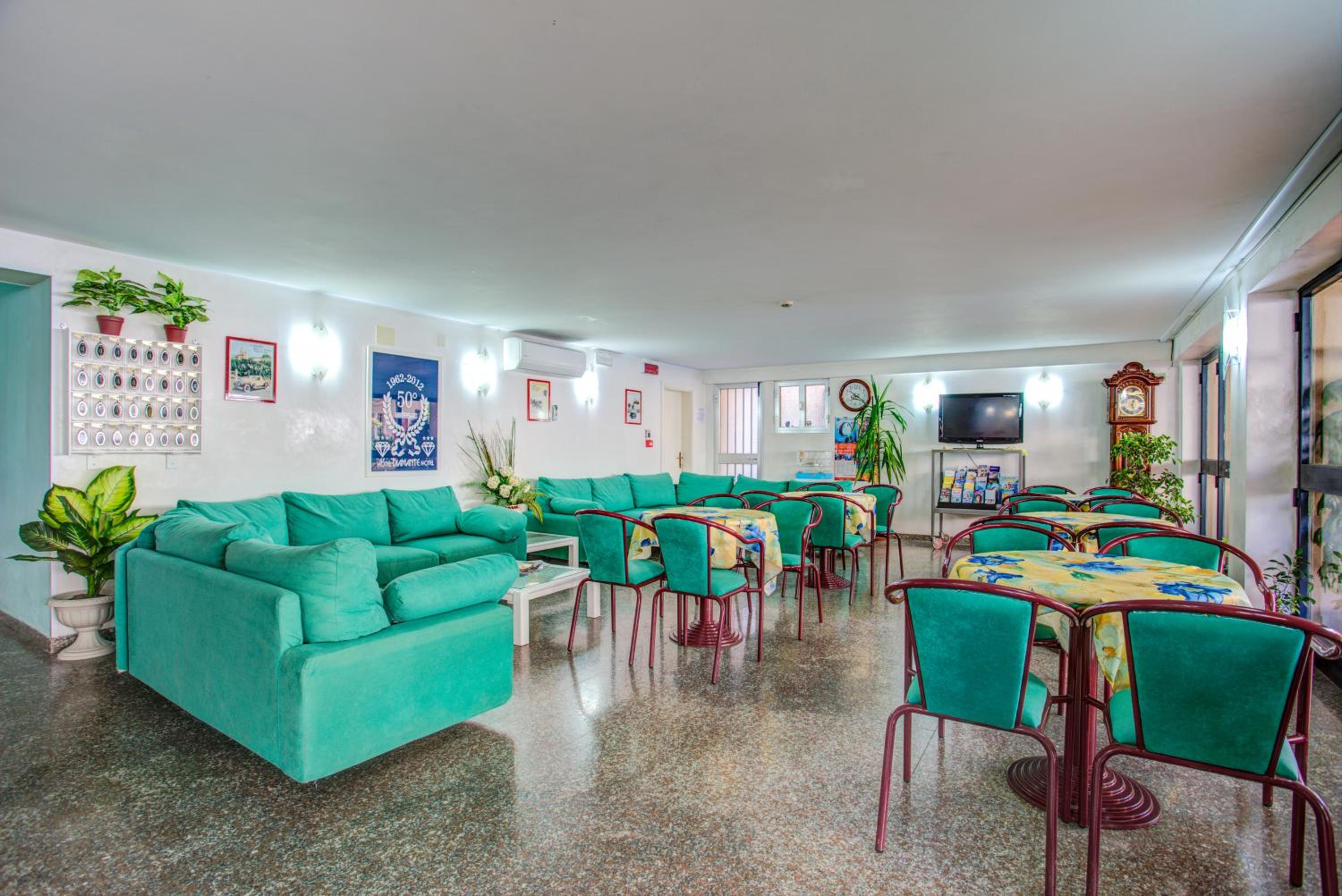 Located just 100 meters from Torre Pedrera Beach in Rimini, Hotel Diamante offers a comfortable stay with a shared lounge, free private parking, and a terrace. The 3-star hotel boasts a restaurant, bar, and a 24-hour front desk for guests' convenience.