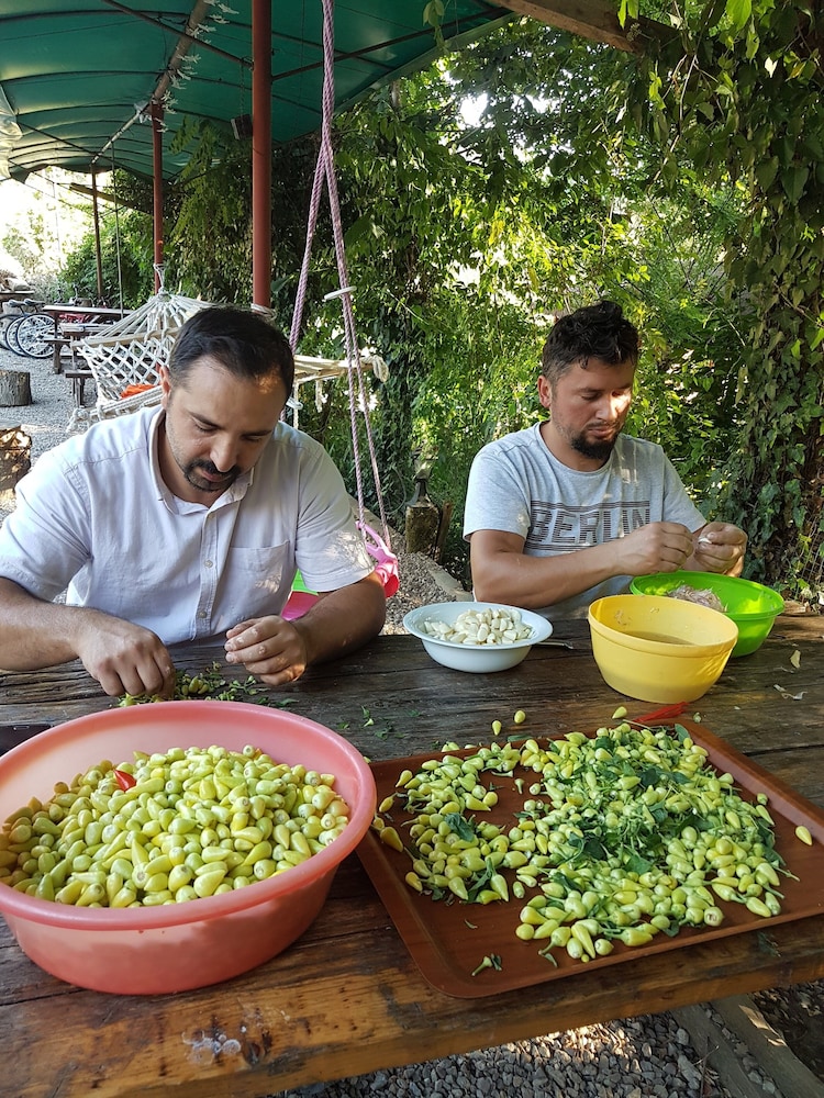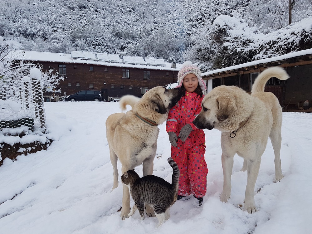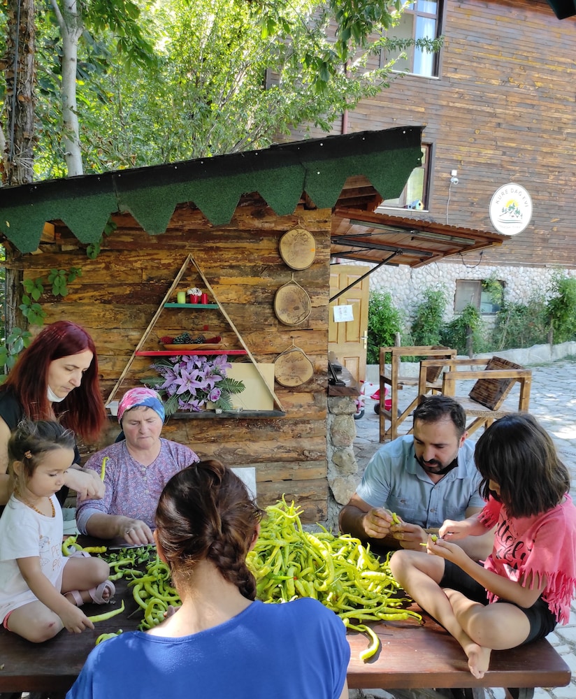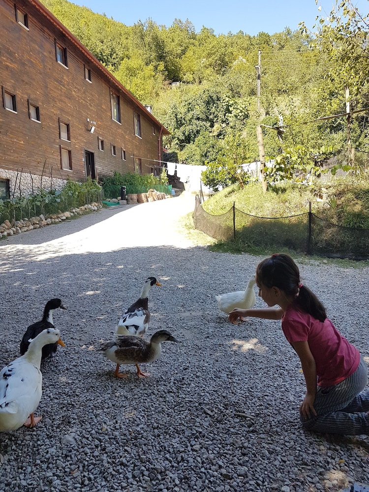 Yer şirin bir Dağ ve Çiftlik Evi. Yeşillikler içinde , huzur verici minik şelalelerin sesleri içinde , kümes hayvanları , kuş , kedi ve daha havlama sesini bile duymadığım inanılmaz uysal 2 kardeş Kangal köpekleri olan muthiş bir yer. İşletme sahibi aile ise anlatılmaz yaşanır. Sizi mutlu edebilmek için gece gündüz canla başla çalısan uyumlu,canayakın,sevgi ve saygı dolu muthiş insanlar. İşletmecilik nasıl olur hatta insan nasıl olunur dersi veriyorlar etraflarına. Bir saniye bile negatif bir mimik bile olmaz mı insanda dedirtecek kadar başarılılar. Nereye gittiğinizi bildiğiniz sürece bu tesis'ten memnuniyetsiz ayrılmak imkansız. Eğer birileri gider ve huysuzluk yaparak , o niye yok bu niye yok diyerek tatil geçirmeye çalışır ise çok üzülürüm inanın. Bu aile bunları kesinlikle haketmeyecek kadar kaliteli insanlardan kurulu. Açıkbüfe kahvaltı gayet doyurucu ve çeşitlilik yeter de artar bile. Annelerinin yaptığı kek,bişi,marmelad ,reçel ve köy ekmeği olağanüstü. Yemekleri ise çok çok lezzetli. Çevre'de daha uygun fiyata güzel birşeyler yemeniz mümkün değil ,çok seçeneğiniz de yok zaten. Ama işletme bunu koz olarak kullanmayı düşünmeyecek kadar asil davranmış menü'de . Odalarda konsept gereği TV yok ama TV'siz yatamayan ben bile huzur içince uyduysam herkes kalır. Tesis içinde değişik yerler'de hamaklar var ve de özel yapılmış süper bir çocuk parkı var.Her mevsim gidilebilir bir tesis . Çevre'de günübirlik gezebileceğiniz kanyon,şelale , Bartın merkez gibi yerler mevcut.