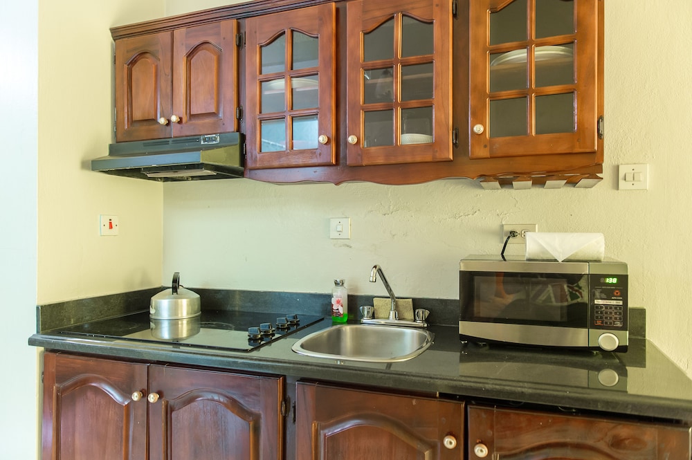 The property itself is in downtown Ocho Rios, appartment individually owned. Stayed in A13 which unfortunately is right next to the pool restaurant which does play music well into the night at times. Description of appartment mentioned equipment such as hair dryer that was not working, several pieces of furniture were broken. We didn't need the aggravation so we left and had to book into another hotel. Owner did not offer any immediate remedial action. Would not go back.