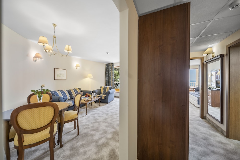 We had an amazing stay! There was good wifi in the room (not on the beach or pool), free parking, daily room cleaning, various and tasty food and drinks (restaurant, pool bar, lounge bar, snack bar are included to all-inclusive). Private beach is cleaned every day, also there is source of mineral water and beautiful forest nearby. Hotel is located outside the crowded and loud city/beaches in very calm place. Perfect for families.