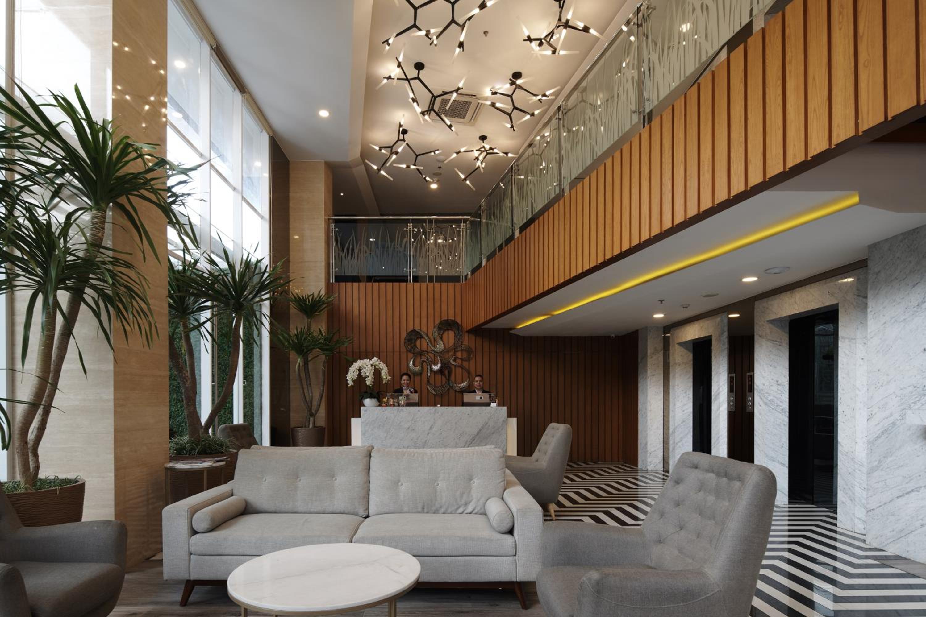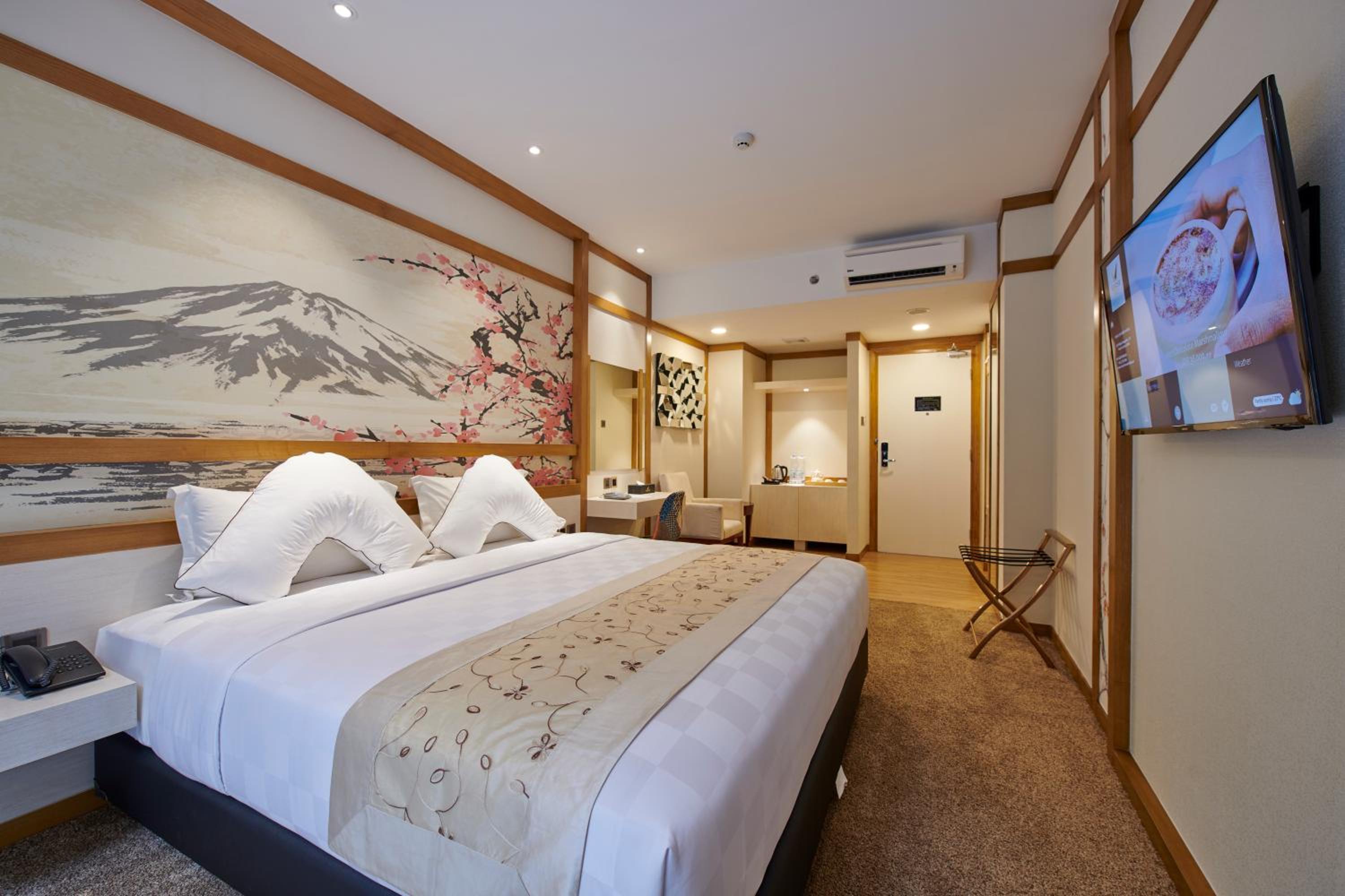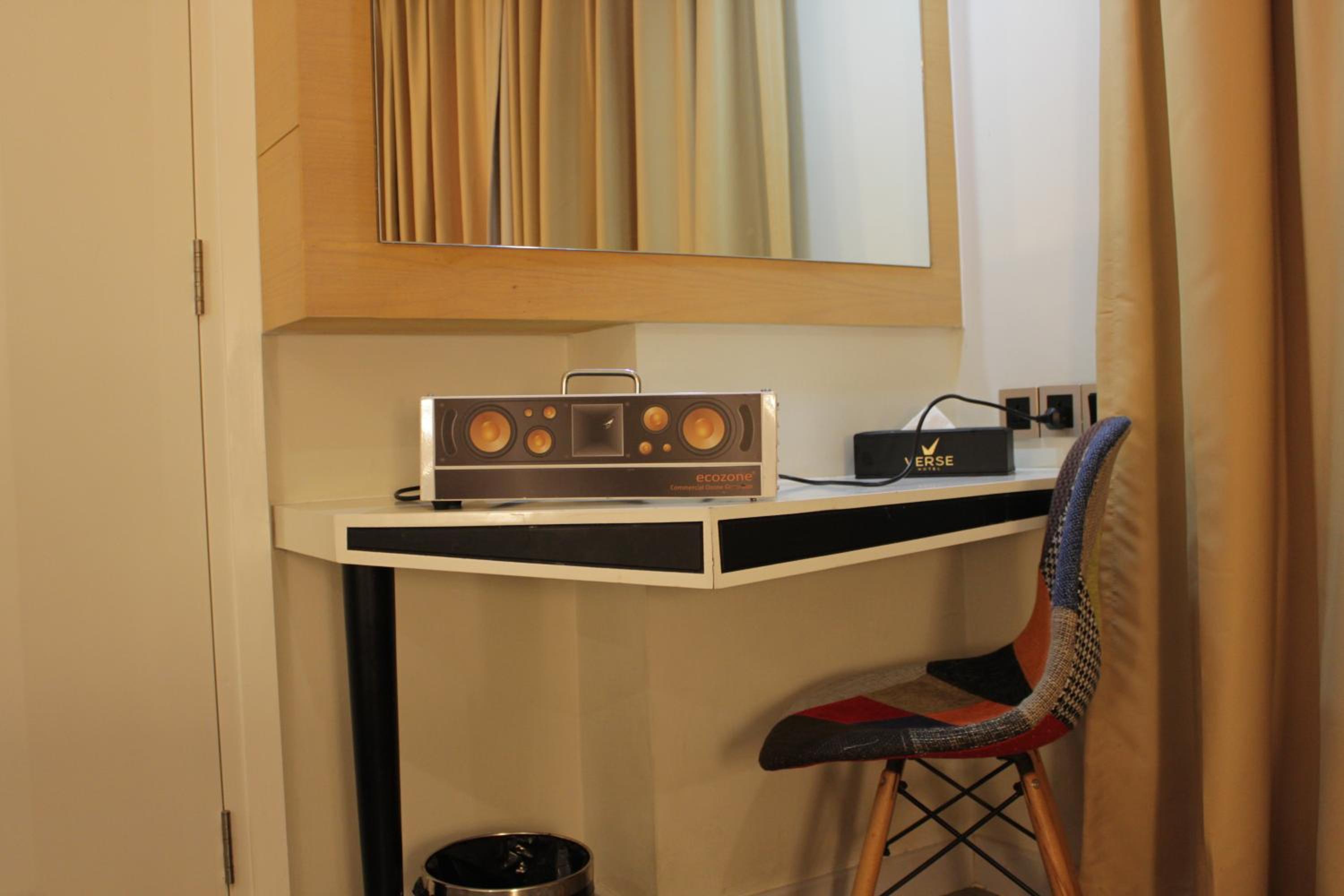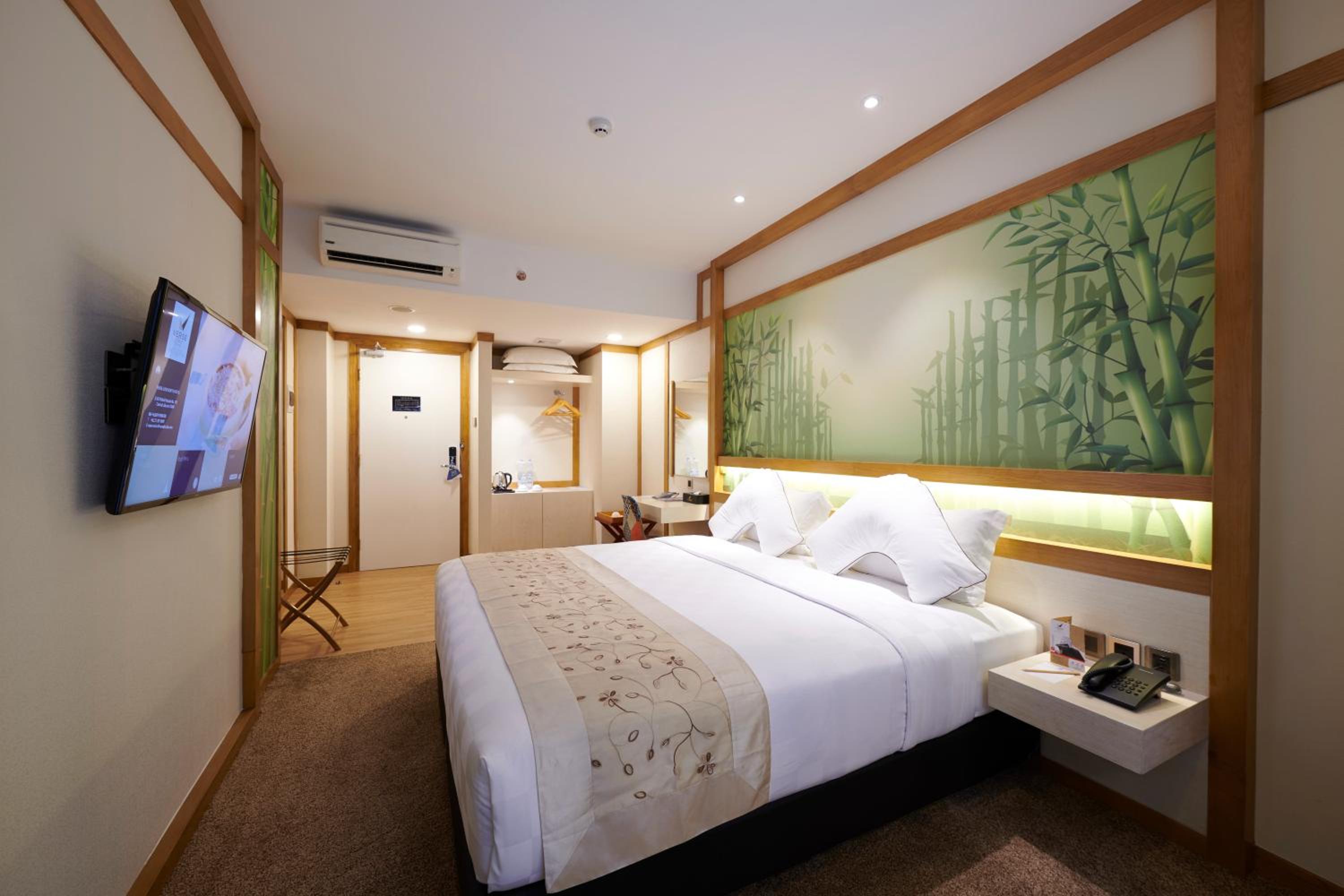 Verse Luxe Hotel Wahid Hasyim offers elegantly designed rooms with modern amenities such as free WiFi, air conditioning, and personal safes. Guests can relax in the comfortable seating area and enjoy complimentary toiletries and slippers in the private bathroom.