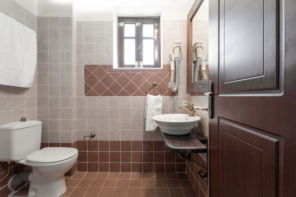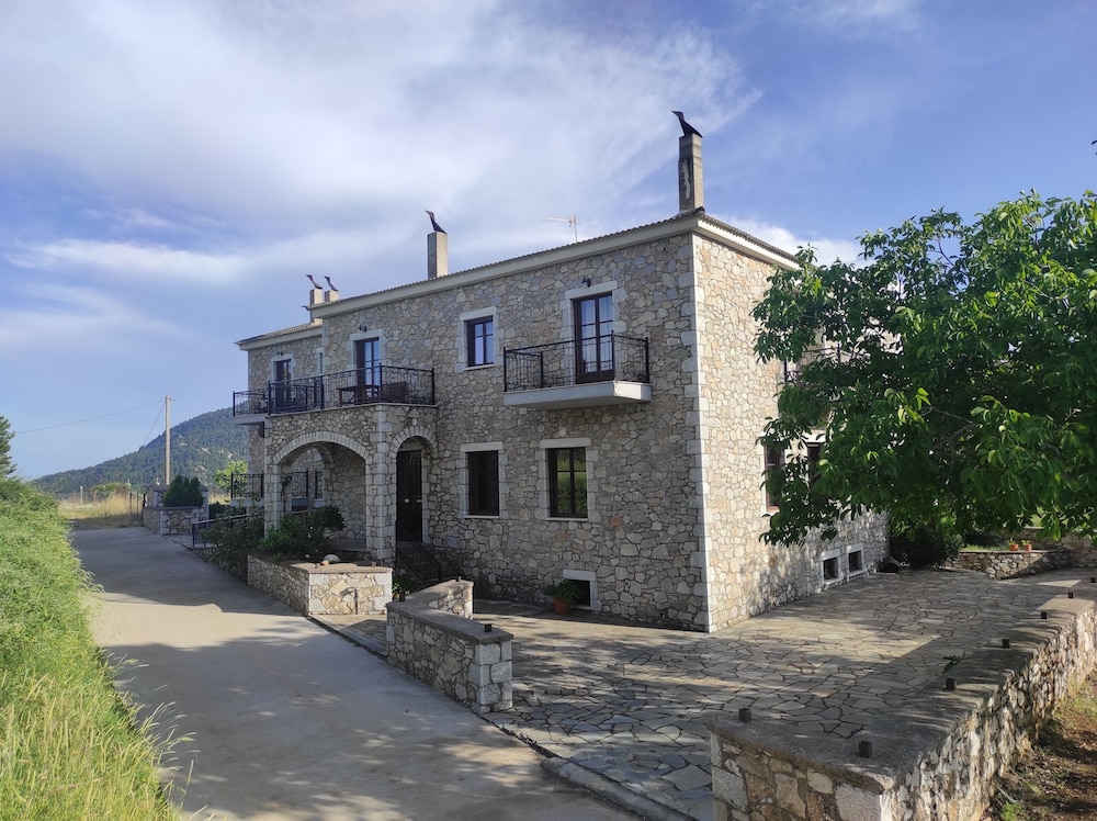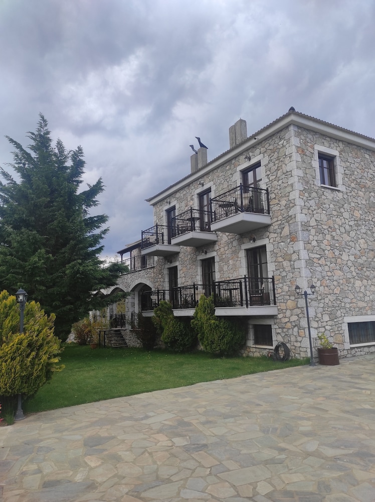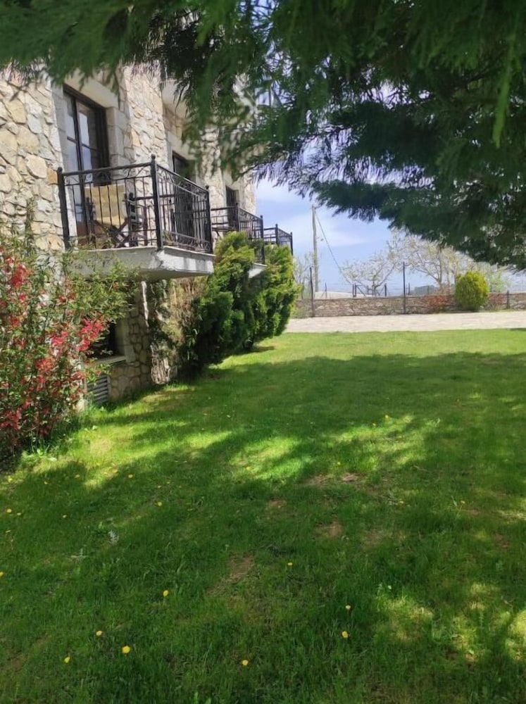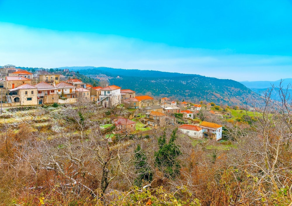 If you love crisp mountain air each morning and stunning views, this is a great choice. We knew the rest of the country was hot, but it wasn't up here. The guesthouse is a two-minute walk down the road to the charming town of Kosmas where you can find good food and more beautiful views. From the guesthouse, there are multiple walking trails which the owner will happily tell you about. We were here early in the season, so only one other group was here but we never heard them. Our room was large and comfortable. We were given a choice of the room I had booked or the larger room at the same cost, so we took the larger room which had two balconies, although only one chair on each balcony, but you can move the chair, a fire place, an extra bed made to look like a couch, and good lighting. We weren't sure if there was air conditioning but that is not an issue in the mountains. Our hosts were very friendly, and the woman greeted us each morning for a made-to-order breakfast. One morning we had yogurt and honey, which is probably from the one of the many hives in the area, and another we had omelets. Assorted breads and unlimited coffee accompanied the meal. The dining room and the main room are charming, and we could see ourselves sinking into the leather sofas watching a roaring fire in winter. At night, we slept beautifully as the bed was comfortable and wooden shutters pulled tight over soundproof windows. Such a delight! We learned that the couple running the guesthouse took over in October of 2021 and are busily repairing the place, so don't be put off by the weeds in the parking area. Instead, sit on one of the terraces outside and enjoy the view and your luck in finding such a place. This is a wonderful place to stay.