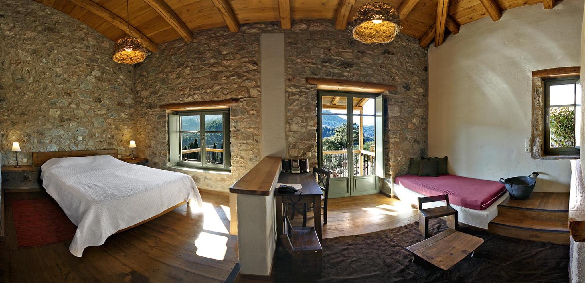 Wauw! Gelegen in de bergen en was het al een hele beleving om hiernaar toe te rijden. Bij aankomst vriendelijk ontvangen door de eigenaar die ons de kamer heeft laten zien. Werkelijk alles van dit hotel is tot in de puntjes afgewerkt. De eigenaar heeft veel liefde in dit hotel gestopt, zeer stijlvol ingericht, natuurlijke elementen gebruikt. Ruime kamer. Uitgebreid ontbijt. Voor lunch en diner kun je een weggetje naar beneden rijden en in het dorp is een restaurantje met lekkere lokale gerechten (lees groentes van het seizoen uit de bergen). Er is niet veel te doen in de nabije omgeving maar je kunt vanaf hier hiken in de bergen of een dagje erop uit naar onder andere de grote stad Sparta. Zorg dat je voor het donker terug bent omdat de weg bochtig is. In de avond is het heerlijk vertoeven op het grote dakterras met bar in het hotel met een waanzinnig uitzicht. De avond koelt lekker af op deze plek. Kom je voor rust, dan is deze plek de place to be!