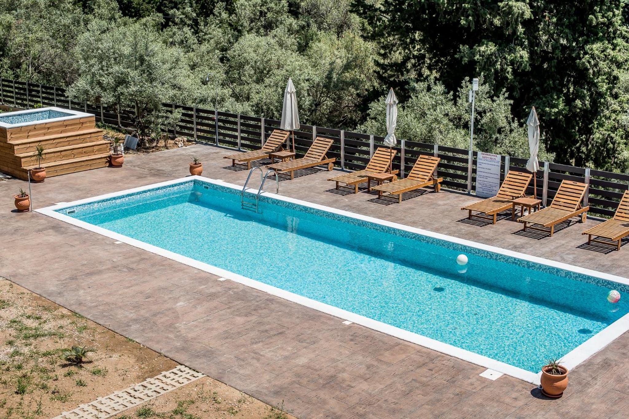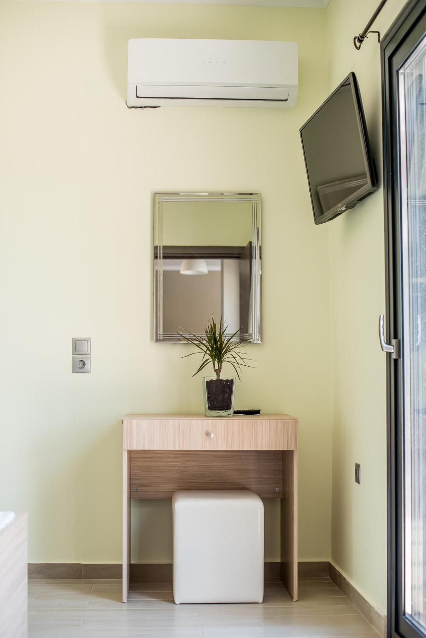 Teretana u objektu, terasa, okolina bazena sa ležaljkama. Smeštaj je čist i Nektarios je veoma prijatan i zanimljiv ugostitelj.