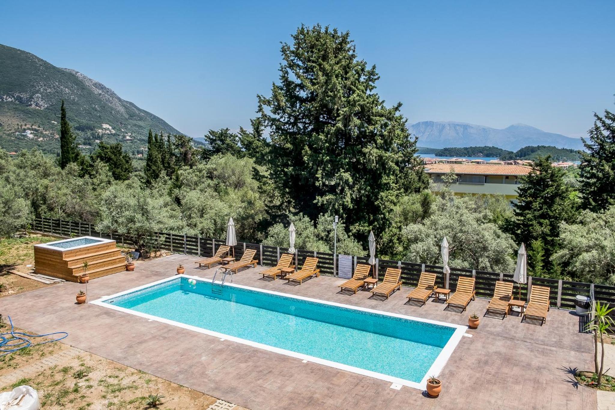 Indulge in breathtaking views from the terrace at Golden Sun Villas, ideal for enjoying a morning coffee or evening cocktail. With towels and bed linen provided, your stay is made even more convenient and enjoyable. Book now for a memorable getaway at Golden Sun Villas in Nydri.