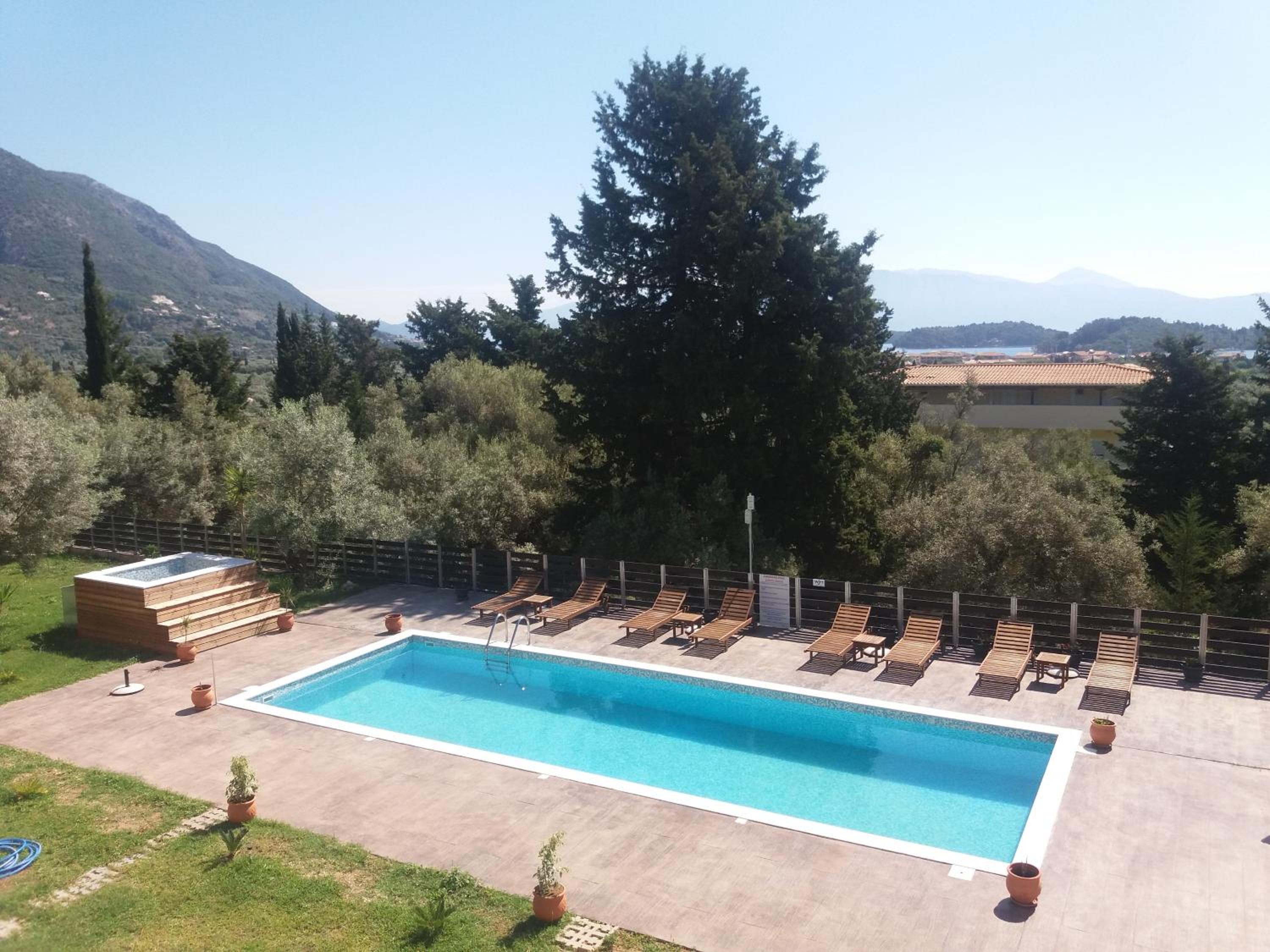 Golden Sun Villas in Nydri offers a relaxing stay with its outdoor pool and barbecue area, perfect for unwinding under the sun. The cozy seating area with a flat-screen TV and well-equipped kitchen in some air-conditioned units ensure a comfortable stay.
