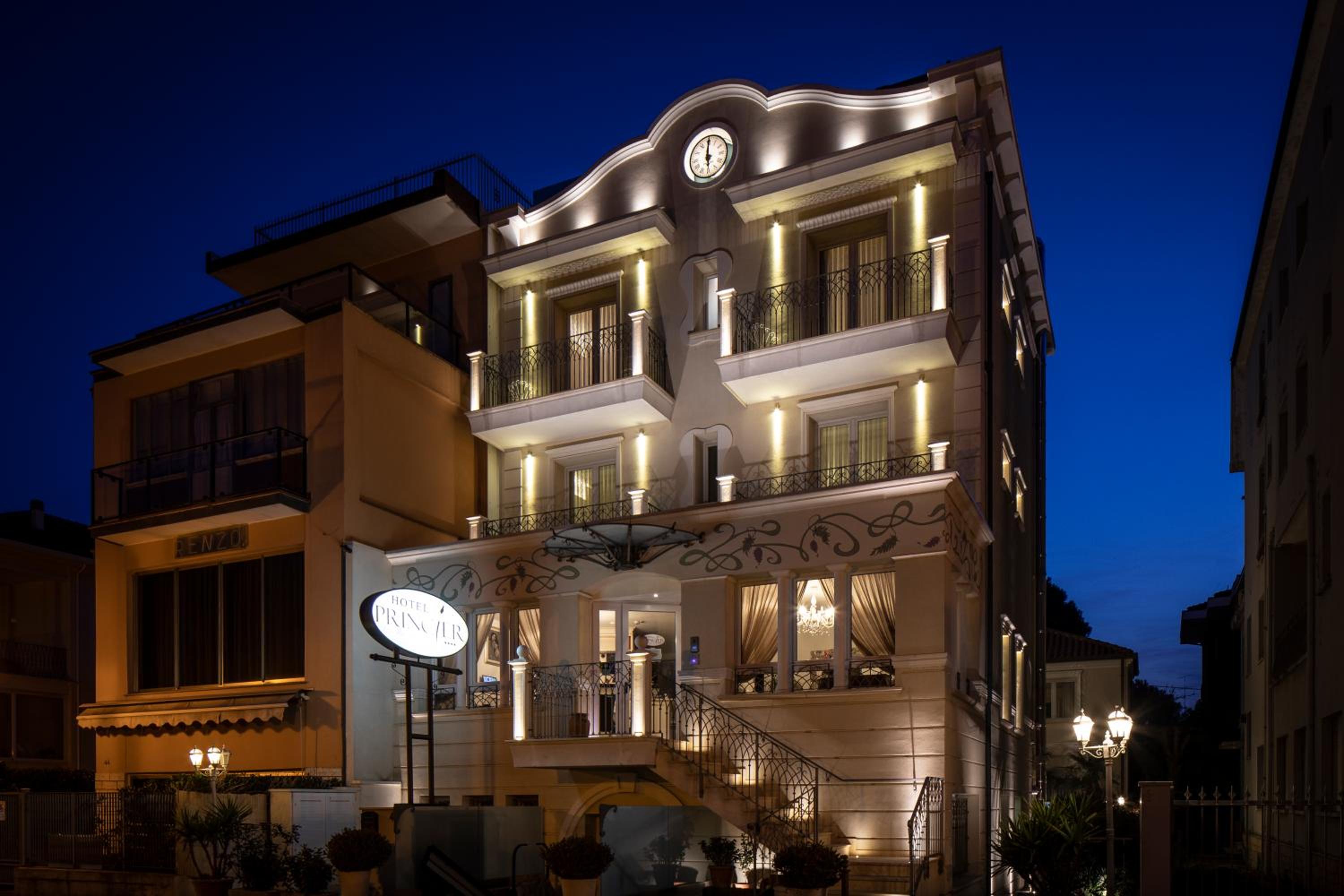 Princier Fine Resort & SPA in Viserba offers elegantly furnished rooms with modern amenities like flat-screen TVs and air conditioning. The private bathrooms are equipped with premium toiletries, ensuring a comfortable stay.