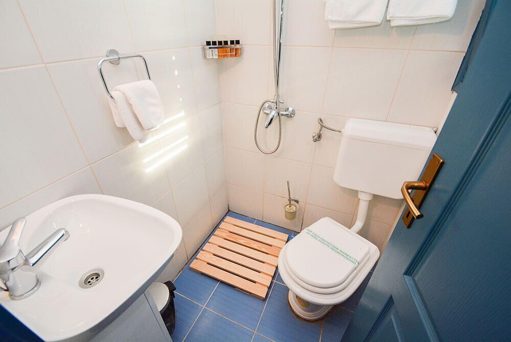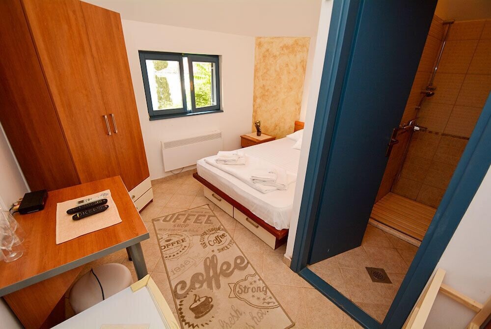 We paid for an apartment for 6 days, with a terrace. What we were given was a standard room (not an apartment) with a 1.5sq m bathroom including sink, toilet and open shower. The room had no tea making facility as promised and the wifi was not available in the room. There were no cotton top sheet or duvet cover on the bed, only a woolen type throw which at 25 celcius at night, was not going to work