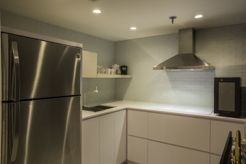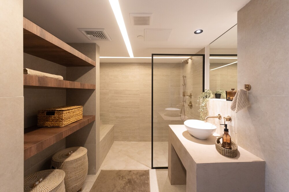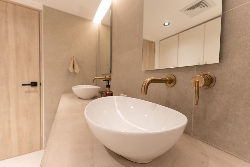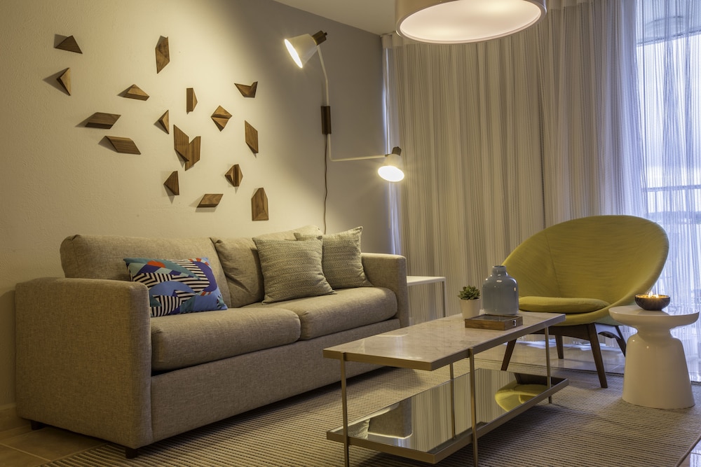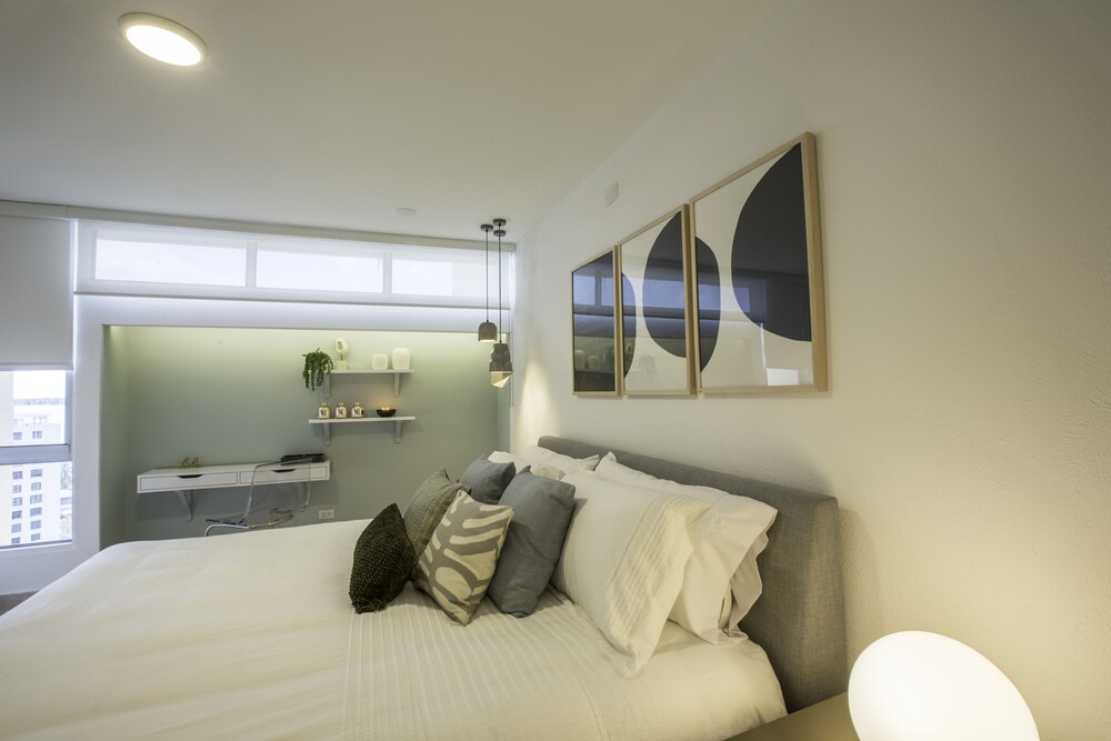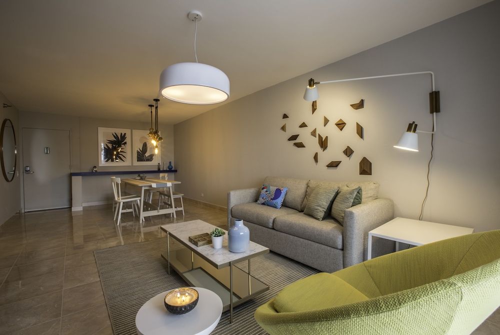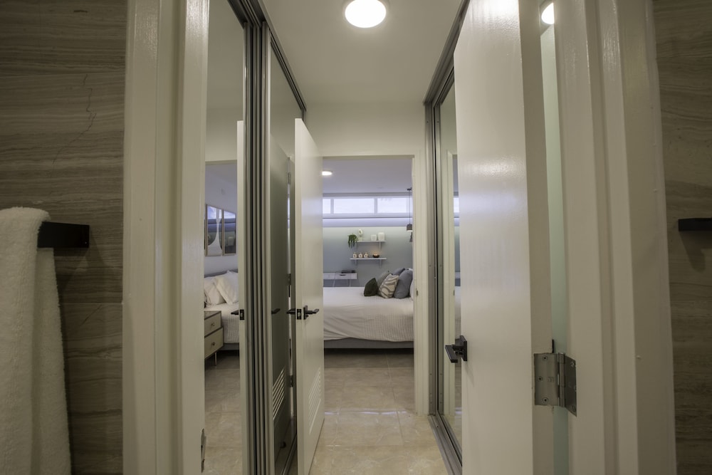 We had a lovely time at this property! It was spacious, clean, and very modern. The location is extremely convenient and we felt safe getting around at night. The beds were very comfortable, and the AC worked great. We also enjoyed the huge TVs in every room. The beach access is also great! We all recommend this suite.