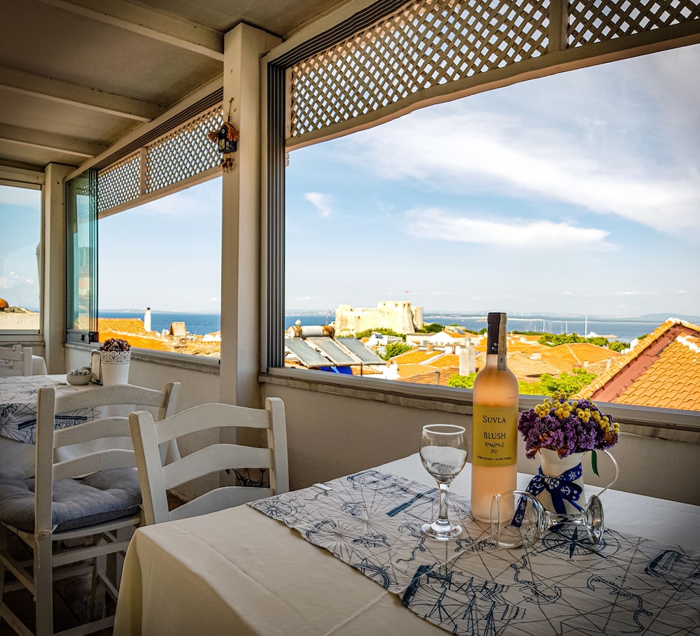 Pandemi döneminde ve sezon açılmadan önce gitmemiz nedeniyle oldukça sakin ve sessiz bir ada bizi karşıladı. Otelde bizden başka kimsenin konaklamıyor olması bizi oldukça rahatlattı ve memnun etti. Aysun Hanım ve çalışan arkadaş (ismini öğrenemedik kusura bakmasın) sağolsunlar çok ilgilendiler. Adeta evimizdeymişiz ve bizlere hizmet eden birileri varmış hissine kapıldık. Otel oldukça sevimli, adanın merkezinde güzel bir yerde. Odalar temizdi. Teras manzarası iç açıcıydı. Bozcaada Kalesi'ni ve denizi görerek kahvaltı etmek güne keyifle başlamamızı sağladı. Kahvaltı oldukça güzel ve zengindi. Akşam yemeği için mekanlar kapalı olduğundan dolayı dışarıdan paket servis söylemek durumunda kaldık. Aysun Hanım bu konularda bize yardımcı oldu ve adadan balık yemeden dönmemiş olduk. Güleryüzlü iletişimleri için teşekkür ederiz. Oldukça memnun ayrıldık.