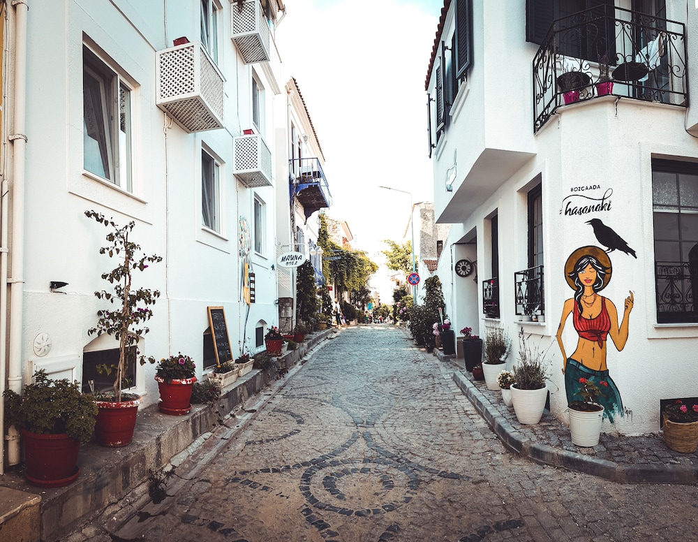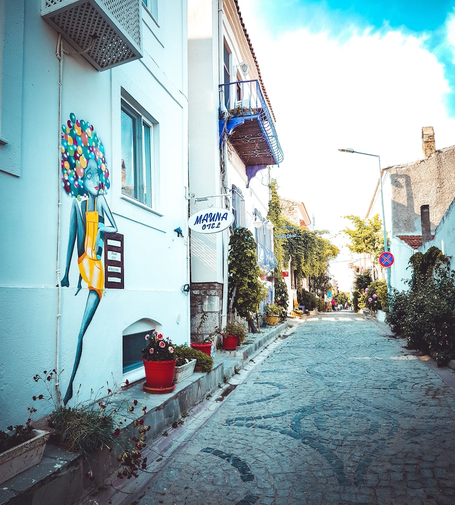 Otelin konumu çok merkezi. Ek olarak park sorunu olan Bozcaada’da otopark imkanı sunmaları en büyük artılarından.
