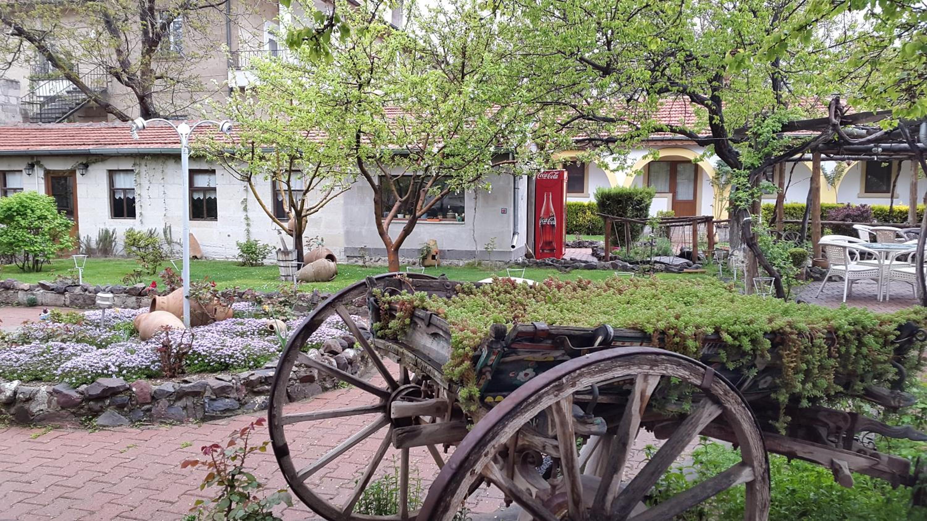 Green Courtyard Oasis: Step into our stone-made hotel in Urgup and be greeted by a tranquil green courtyard adorned with trees and flowers. A serene escape in the town centre awaits you, just a short drive from the Goreme Open Air Museum.