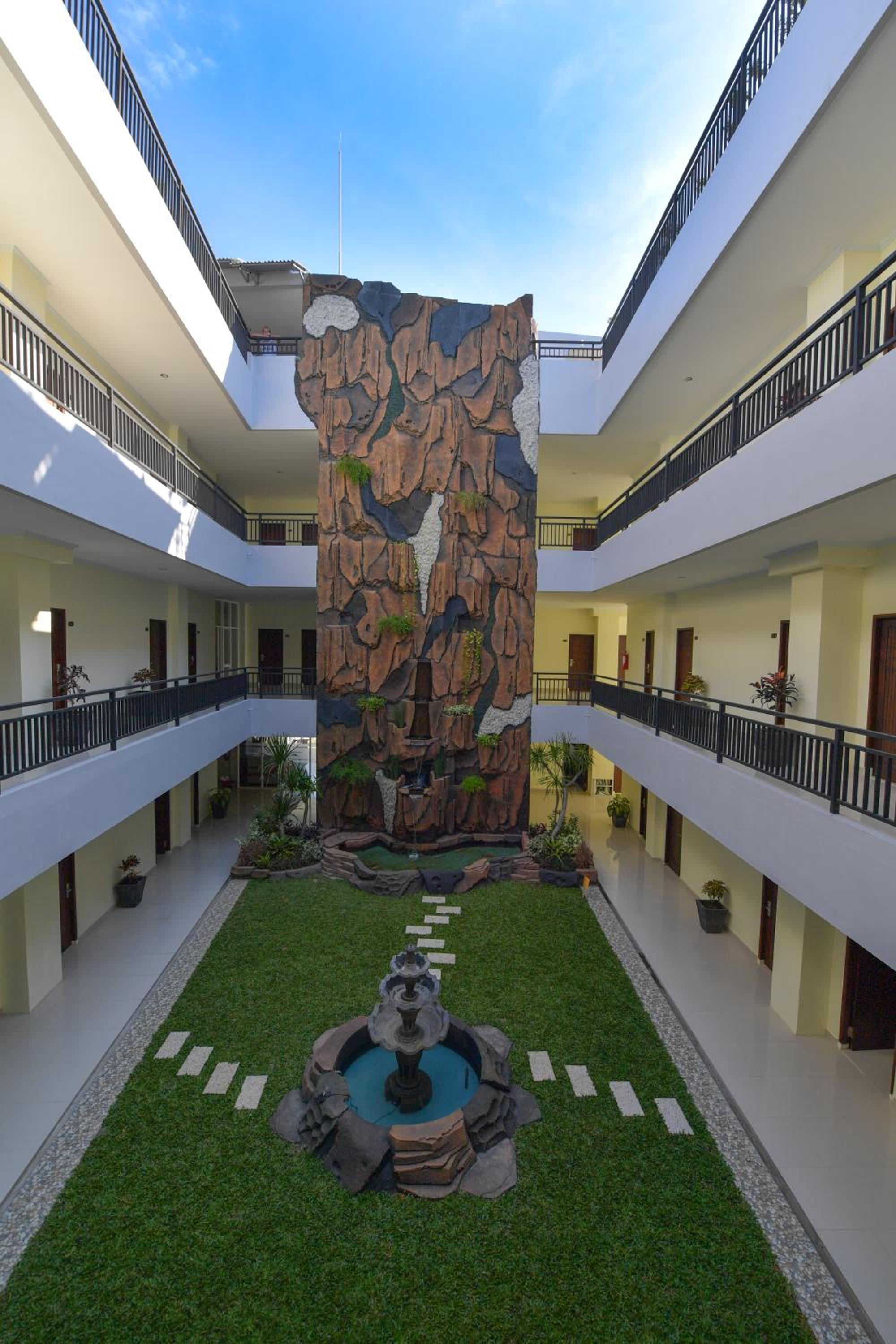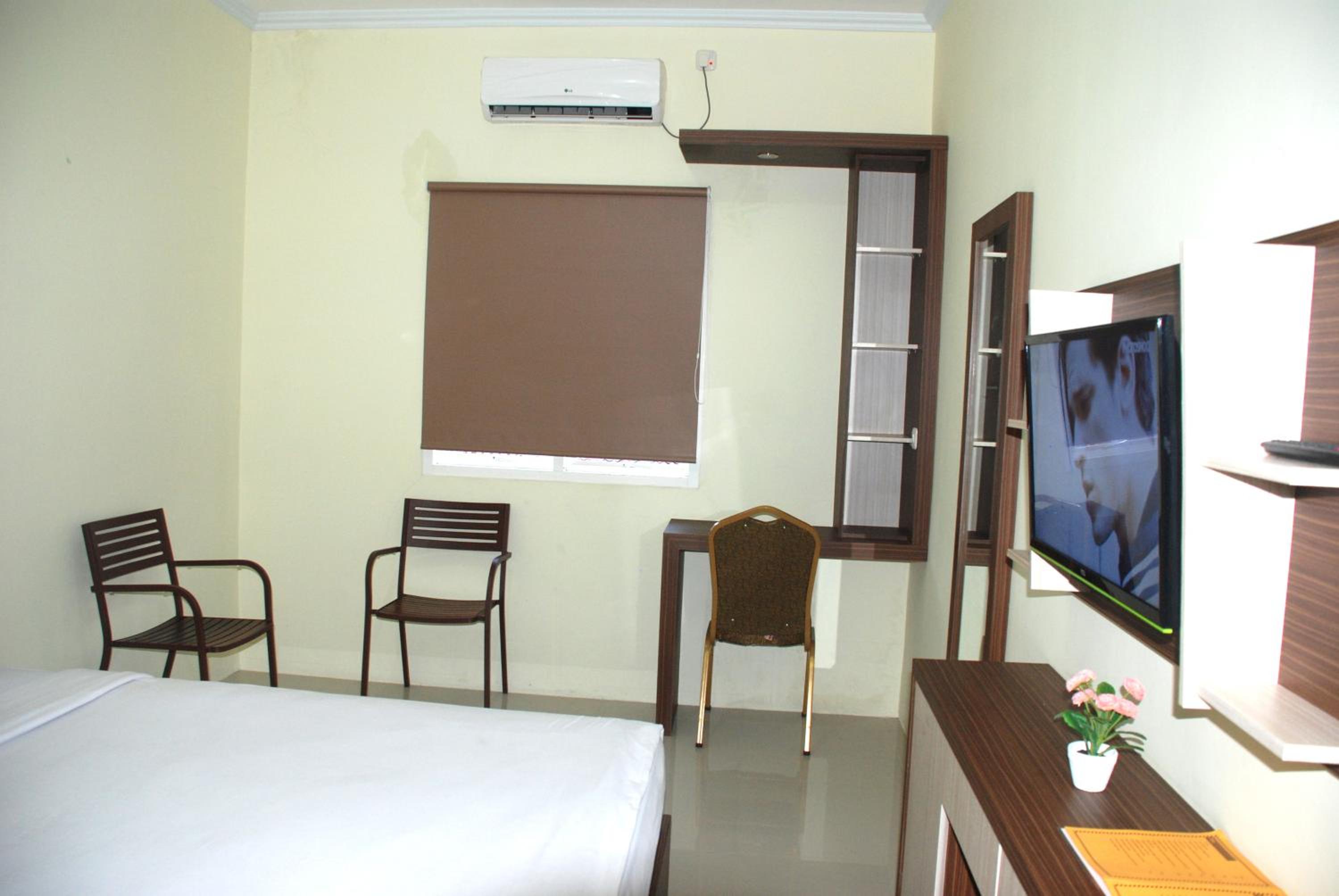 This hotel located in small side street so its bit hidden but very good and calm in d night. The view from the room and the cafe in the rooftop is amazing.we can see Manado tua island in a clear day and enjoy the sunset with cup of coffee from the cafe or just mock-tails. The room is spacious and clean, mostly double bed with modern simple furniture and equipped with air conditioners and tv with international channels, the wifi is free but not so fast. The staff are very friendly and beautiful. I try the breakfast menu with fried rice and it was delicious. They have laundry and store in the basement as well. Fitness room with well equipped and comfortable place is on 2nd floor.The price is affordable and good for backpackers
