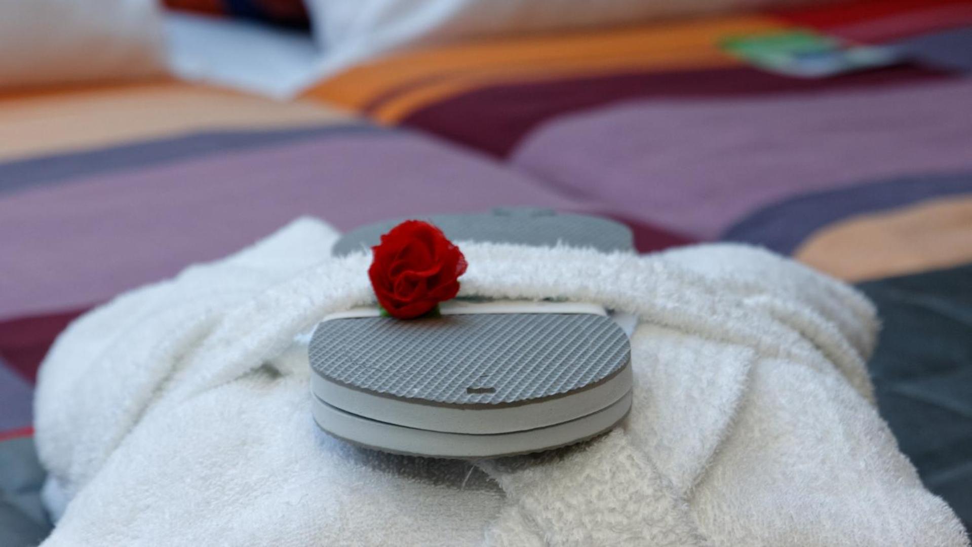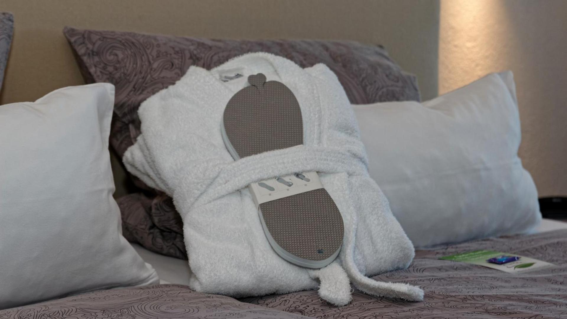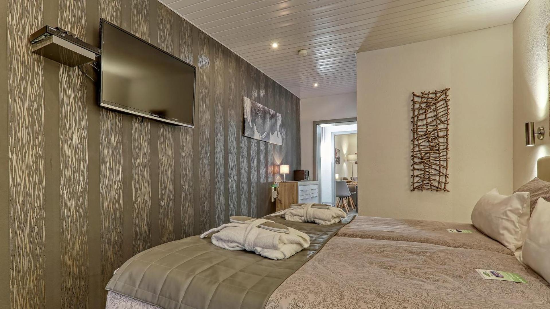 Pokoje mají terasu s výhledem do vesničky a okolní přírody, včetně lehátek. Postele jsou pohodlné, ale na nás byly matrace trochu moc měkké. Na pokoji je zdarma Netflix, i v zimě bylo teplo a vybavení bylo moc příjemné.