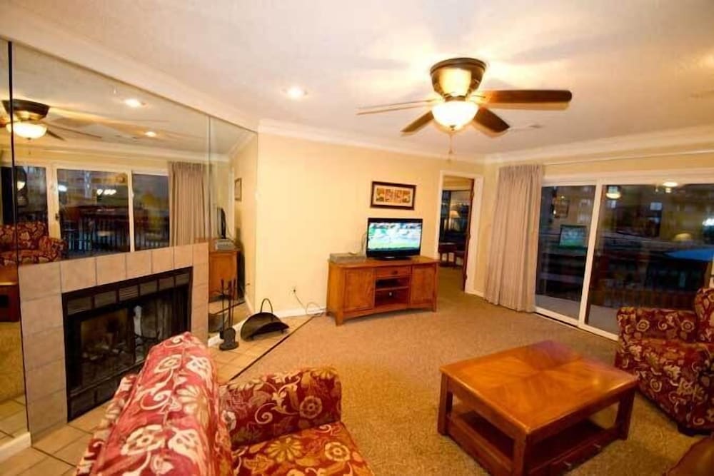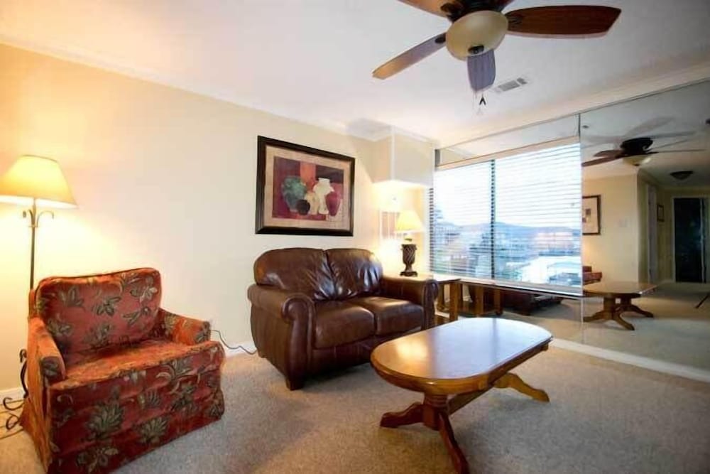 I own two timeshares for the past 30 years. I am assuming I have the worst room in the resort, I should hope not all units are like this. I asked to not be placed in building C but was told they are all booked. Building C is behind building B with great porch views of building B and their parking lot. The building is on a hill, and there are very many rickety wood steps (guessing about 50 feet) leading down to the main reception building with the pool. I would not go on those steps again. Having to drive the car to the reception area and the pool was very inconvenient. GOOD - Checkin was easy, bed is comfortable, furniture is nice. There are ceiling fans in the bedroom and living room. Small 32 inch TVs in the bedrooms and living room. There is a fireplace surrounded by mirrored walls. Our unit had a washer and dryer. Nice tall posters on the bed - but I could not see the TV when lying in bed. BAD - Popcorn ceilings, shower barely warm, and cheap cabinets from the 70's. Very dark - dark brown furniture, big dark wood dining table, darker floor, and dark brown bead board type of paneling. Porch had two black chairs and a white table, white lounger, and 3 white chairs making it a bit crowded). Two of the white chairs and the lounge were broken. In addition there was a spindel missing on the wood railing the could easily allow a child to fall two stories to the parking lot below. The porch was not swept with lots of debris in the corners. UGLY - kitchen, dining room, and bathrooms had this very dirty, uneven, brown flagstone tiles with black grouting. They not only looked filthy and stained, the corners were discusting. they looked like people had been walking and dumping things on the floors for 50 years and they gave up trying to clean them. Apparently they do not seal the stones or do anything to make them less purous. In the master bedroom there was a section with the sink and a huge 2 person whirlpool. That would have been ok - but when putting in the big whirlpool it only left less than 3 feet wide for the room with the toilet and a few inches more for the shower. Sitting on the toilet, feet on the dirty field stone floor, I actually had to lift my arm to get the toilet paper off the roll. The master bathroom is disgusting, the other bathroom in the other bedroom was bigger with only partial flagstone and some carpeting.