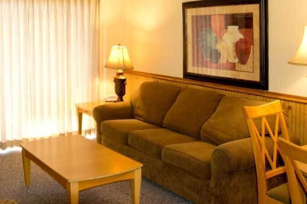 Very old, out dated and in disrepair. I am surprised that RCI still maintains a presence here. The carpeting is filthy; full of stains, tears and holes. The furniture is very old and worn appearing to have been bought in a yard sale or picked up on the side of the highway. The room we stayed in was designed to sleep eight but could only sit three in the living room. There was only one end table and a coffee table so plan on setting your drink on the floor. I could go on and on but other people have painted a better picture with their reviews. I believe this place has RCI rooms that are crappy for those of us that exchange and other nicer rooms for overnight paying guests. This is the second worst place that I have stayed since being and RCI member for over 20 years. I am disappointed with you RCI for allowing this to happen. The one highlight of this facility is the hot tub. We used on the first night and enjoyed it very much. The next day they shut it down in order to paint it. I guess they do not want RCI members to enjoy their stay.