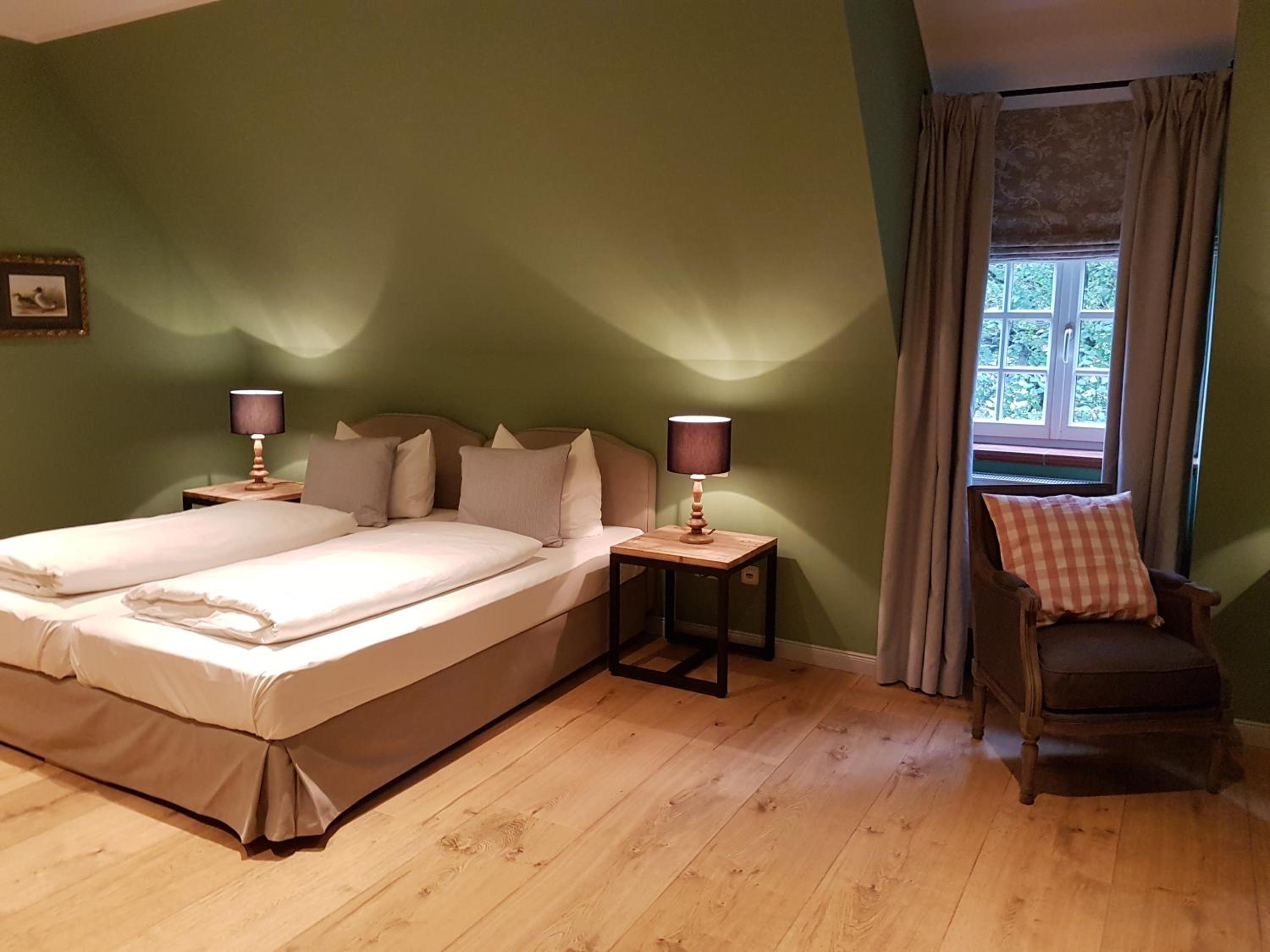 Die Lage des,Gutes bietet Ruhe und Erholung. Mein Zimmer mit Bad war wunderschön ausgestattet, komfortabel, gemütlich und groß. Bei schönem Wetter hätte der Balkon die Möglichkeit geboten, die schöne Natur und den Blick auf den Teich zu genießen.
