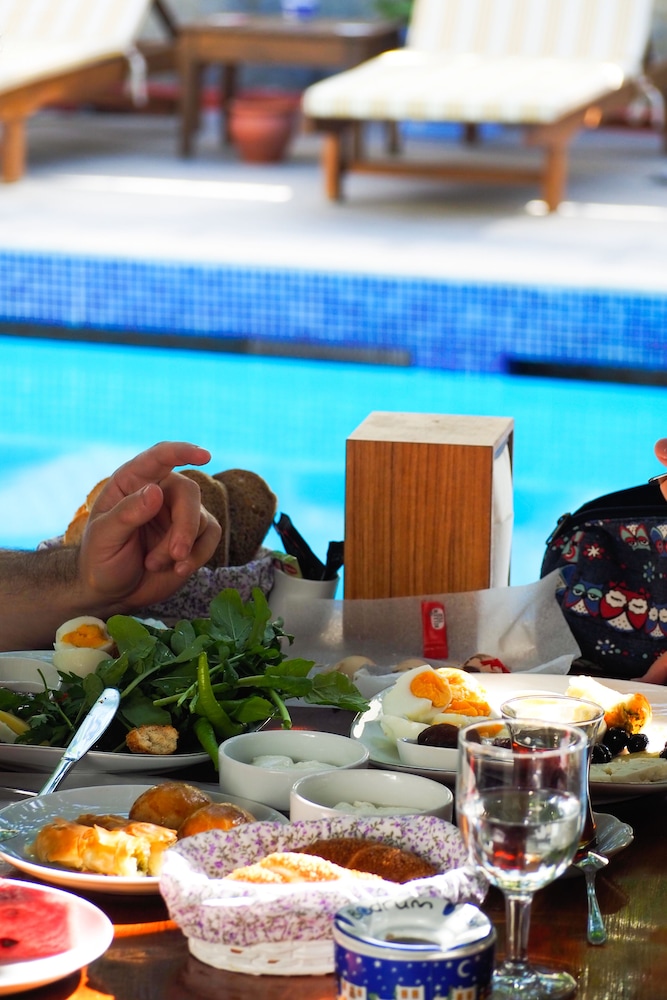Gürültüden uzak, inanılmaz güzel bir avluya sahip sakin bir butik otel. Otel işletmecileri çok tatlı ve her sorumuza çok güzel ve detaylı şekilde cevap verdiler. Otelin konumu çok güzel, Bodrum merkeze yaklaşık 15 dk yürüme mesafesinde. Otoparkı yok fakat bulunduğu sokakta park için bayağı bir alan var. Kahvaltısı geniş ve çok taze ürünlerden oluşuyor. Dışarıda para verip yediğimiz yerlerden çok çok daha güzel. Odalar ve otelin temizliği çok iyiydi. Kaldığımız oda çok geniş ve ferahtı, banyosu pırıl pırıldı. Tek olumsuz yorumum yatakların biraz ufak olmasıydı. Bir çift kişilik bir de tek kişilik yataklı odada kaldık. Yataklar biraz dar ve kısa geldi bize ki çok uzun insanlar da değiliz :)