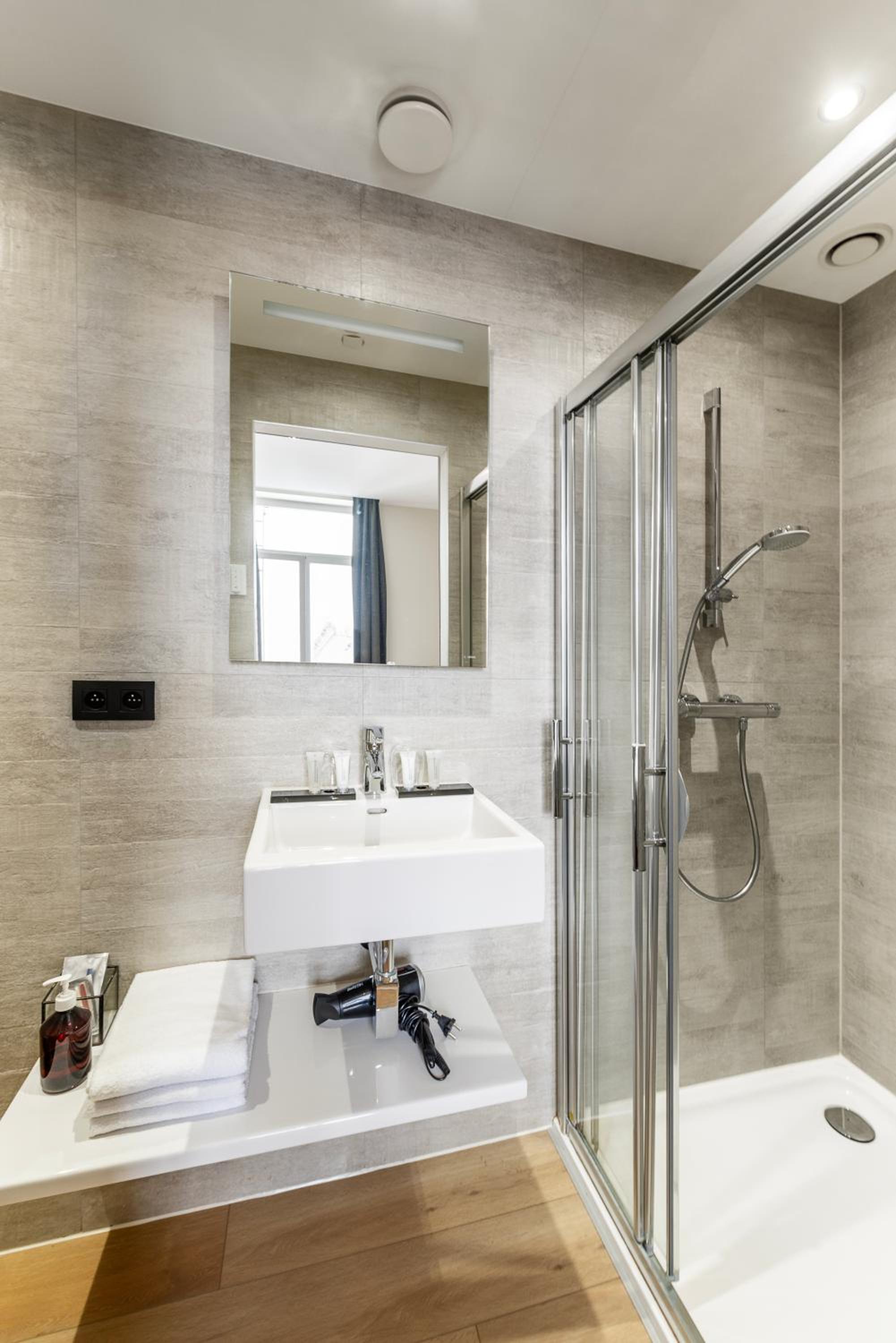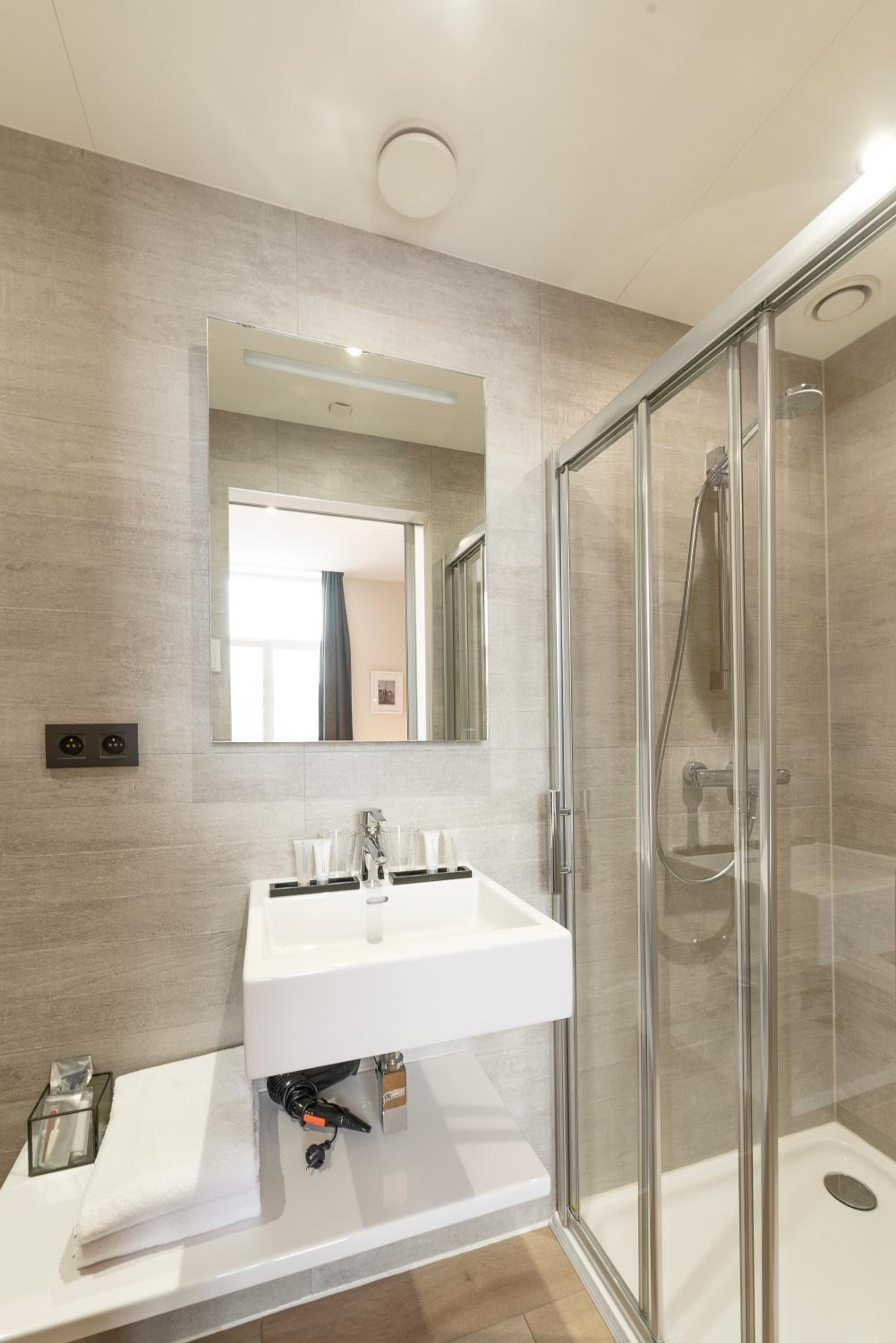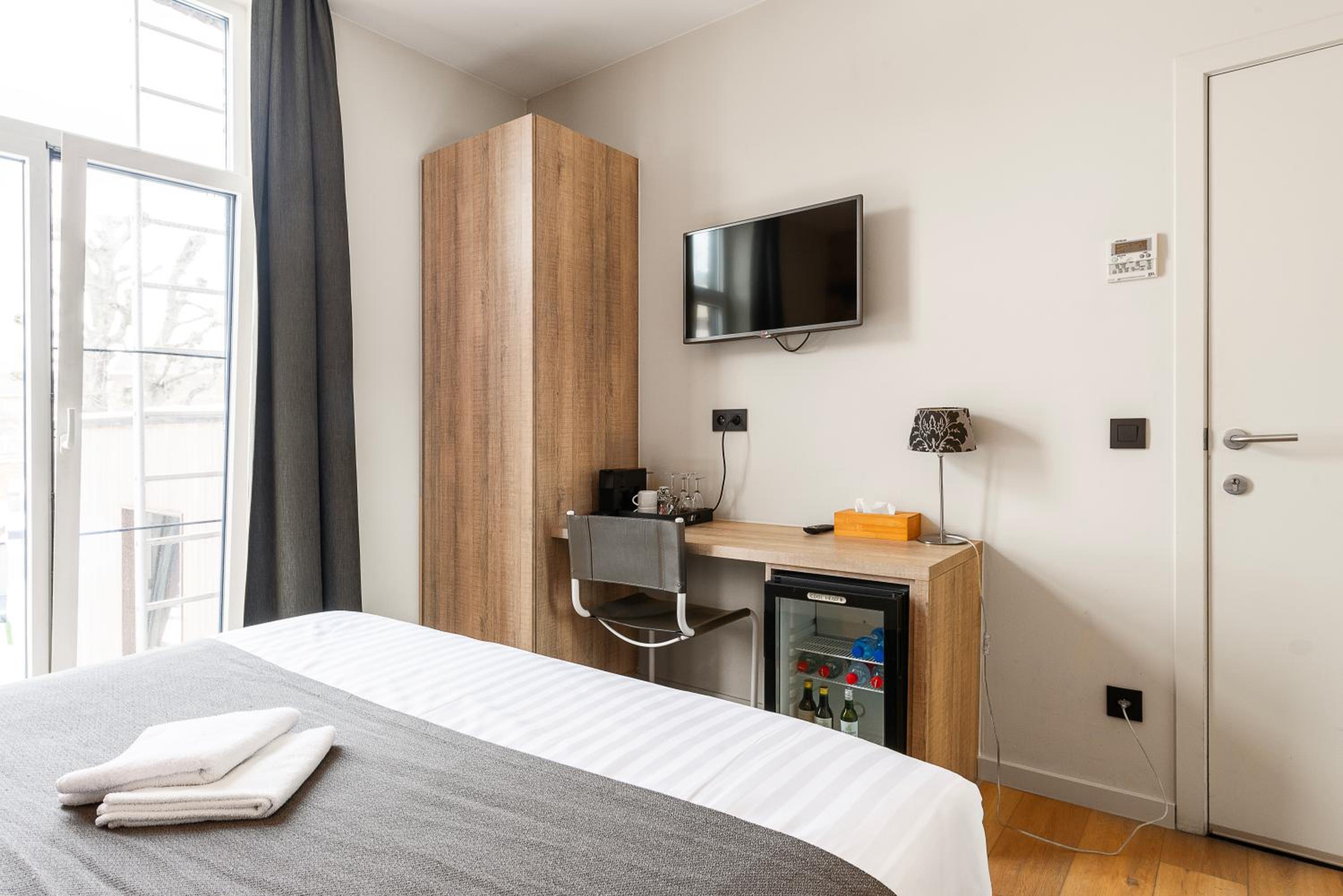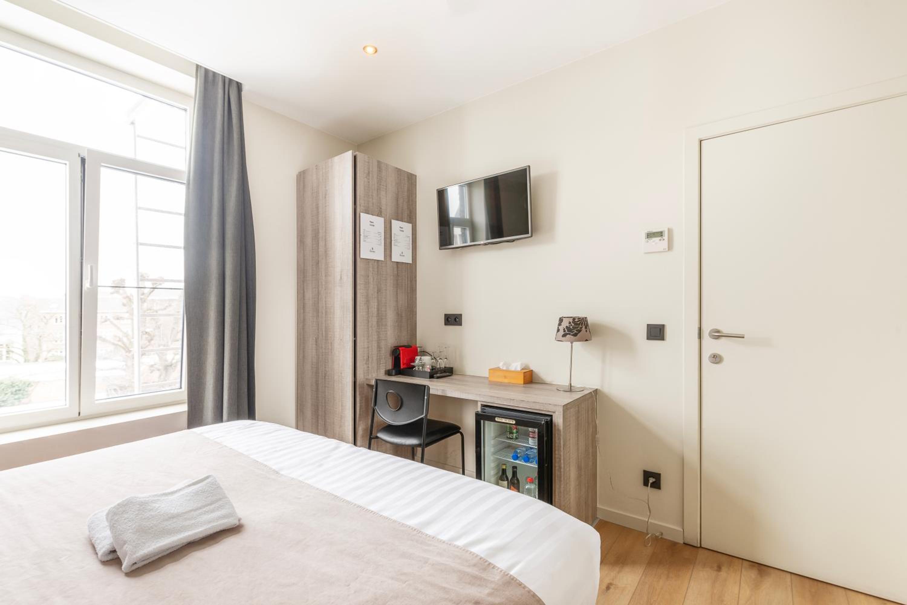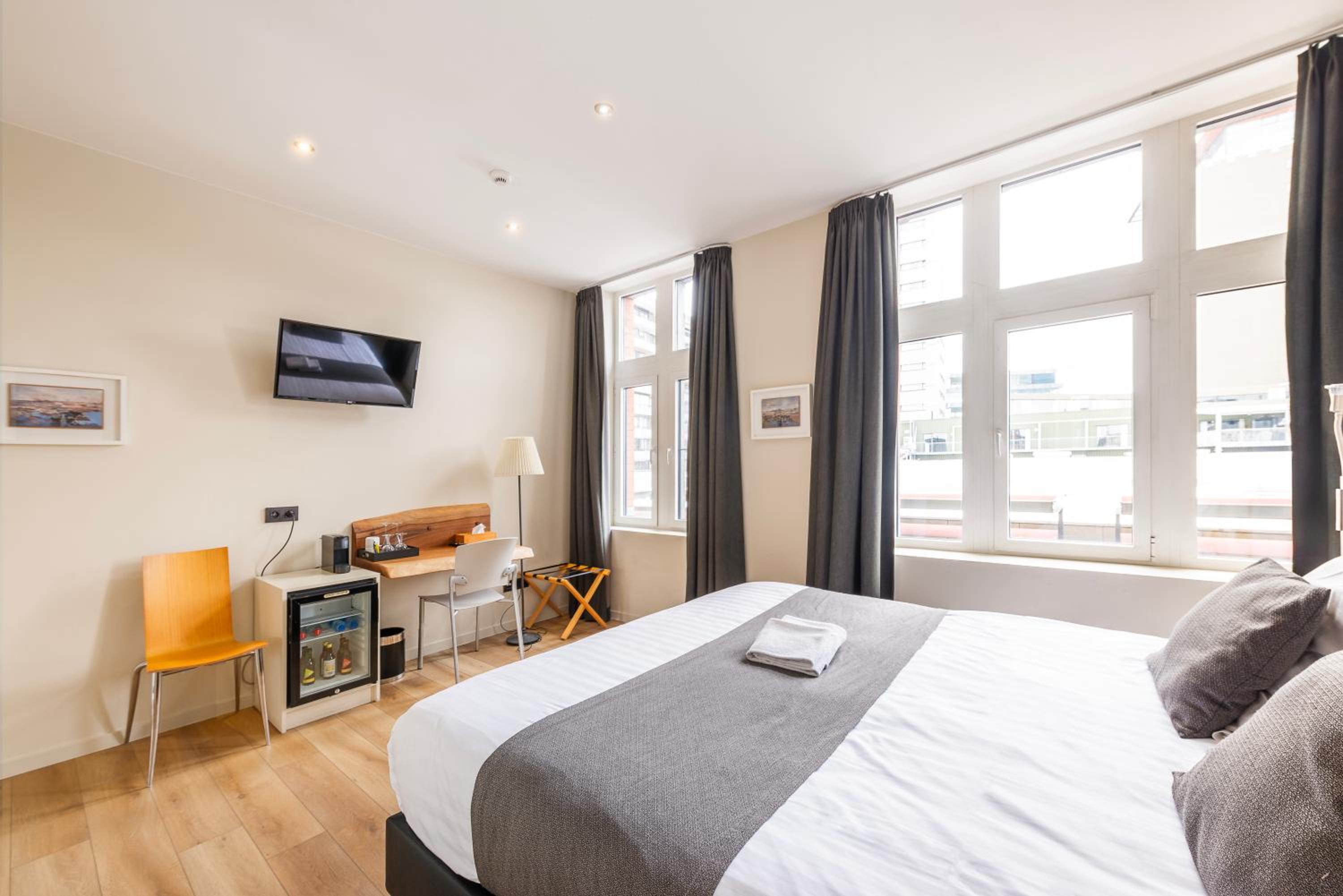 The air-conditioned rooms at Het Menneke Hotel are thoughtfully designed with wooden floors and come complete with modern amenities such as a flat-screen TV, minibar, and a private bathroom stocked with complimentary toiletries.