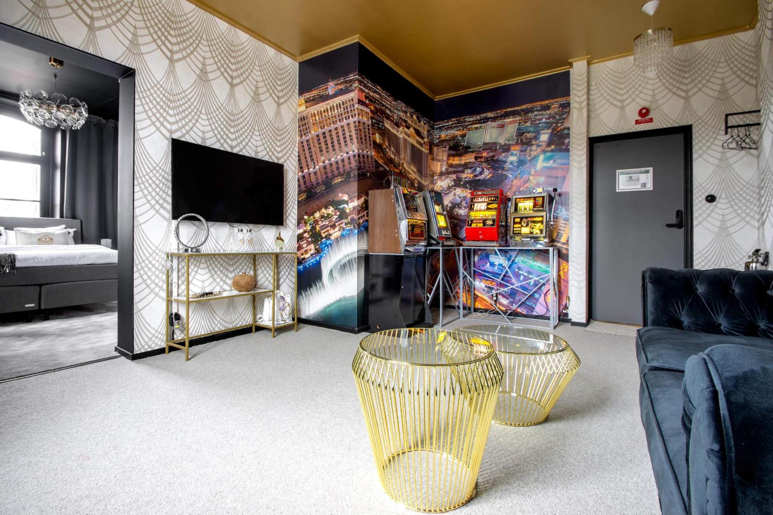 Högst upp i hotellet med hund!!! Ingen hiss. Mörkt svårt att se i trapporna. Svart inredning, svag belysning, allt svart i badrummet med svag belysning!! Hemska sängar!!!