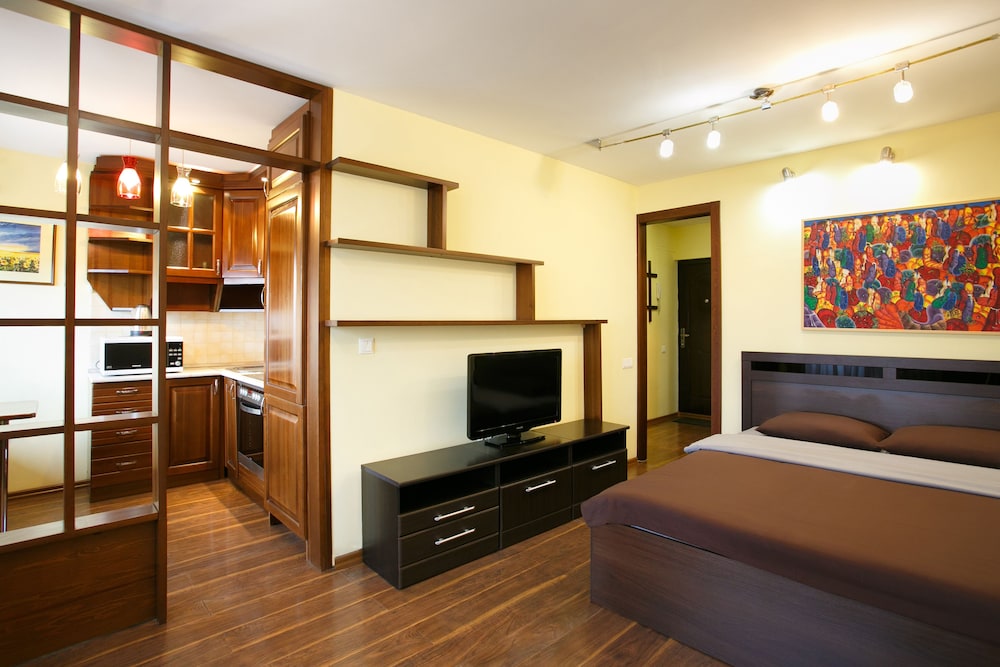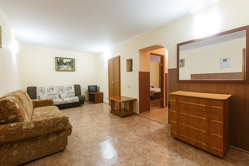 Этим летом два раза пользовались услугами этого отеля. В первый раз опыт был более успешным. Квартира находилась на улице Урицкого в самом центре в очень приятном районе. В квартире было все скромно, мебель старая, но чисто и удобно. Стиральная машинка, плитка, посуда, фен, утюг, гладильная доска, полотенца , постельное белье. Большой минус то, что квартира была на четвертом этаже без лифта. Я была с коляской и ребенком, это было очень неудобно.