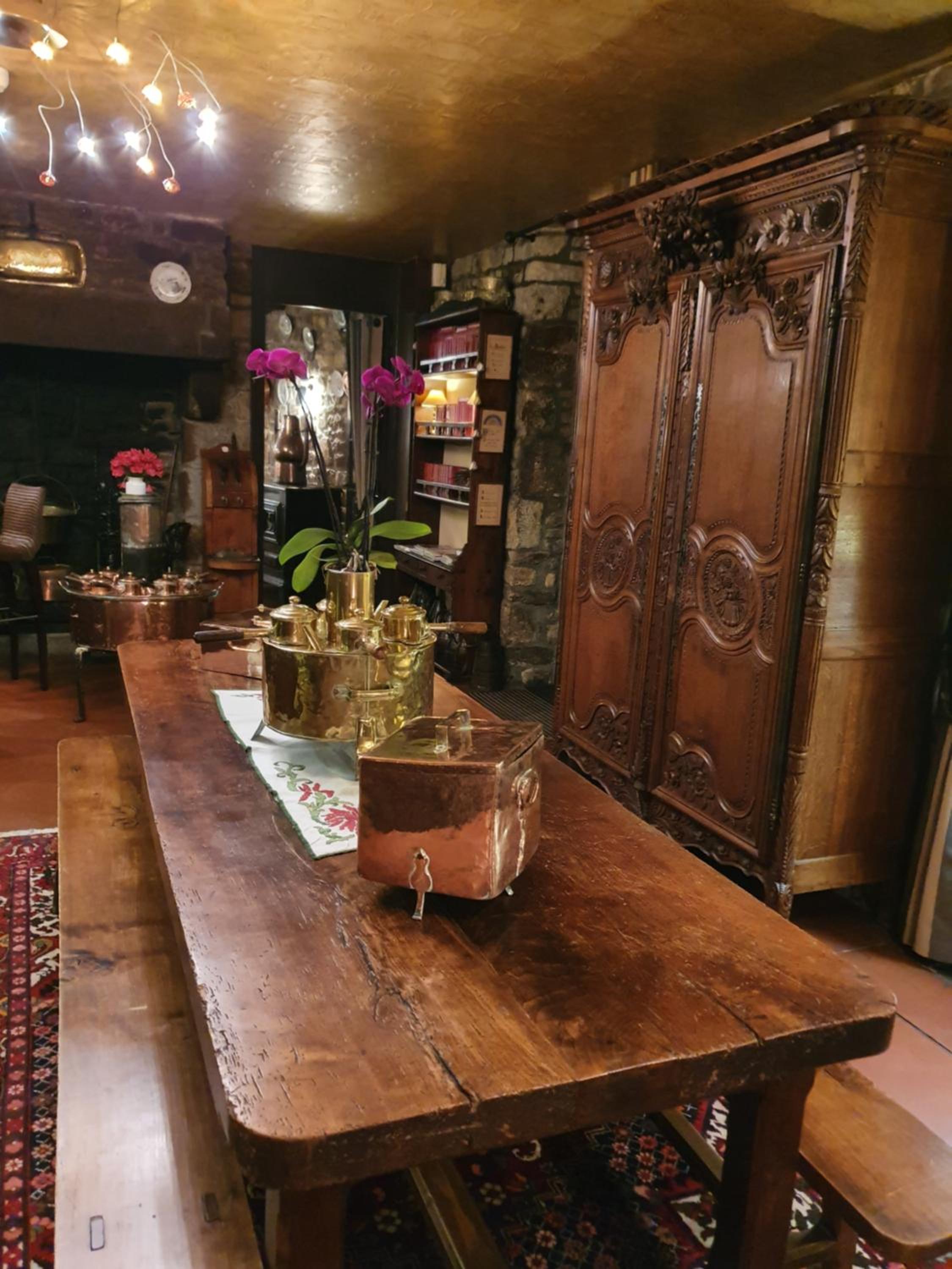 Le plaisir de retrouver un hôtel normand à l’ancienne avec plein de cuivres dans la salle du petit déjeuner et des produits normands