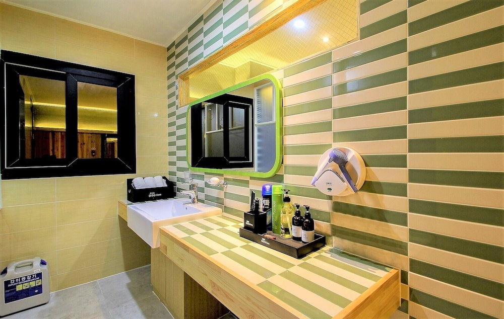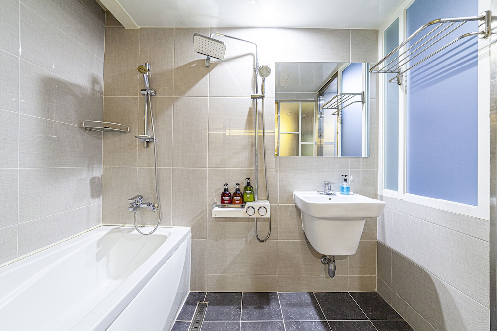 This hotel is only a block from the Busan railway station, down a quiet city street. We were given a huge room with three showers, massive tv, monogrammed robes and linen, separate hand basin and toilet for ₩45,000. Excellent value for money.