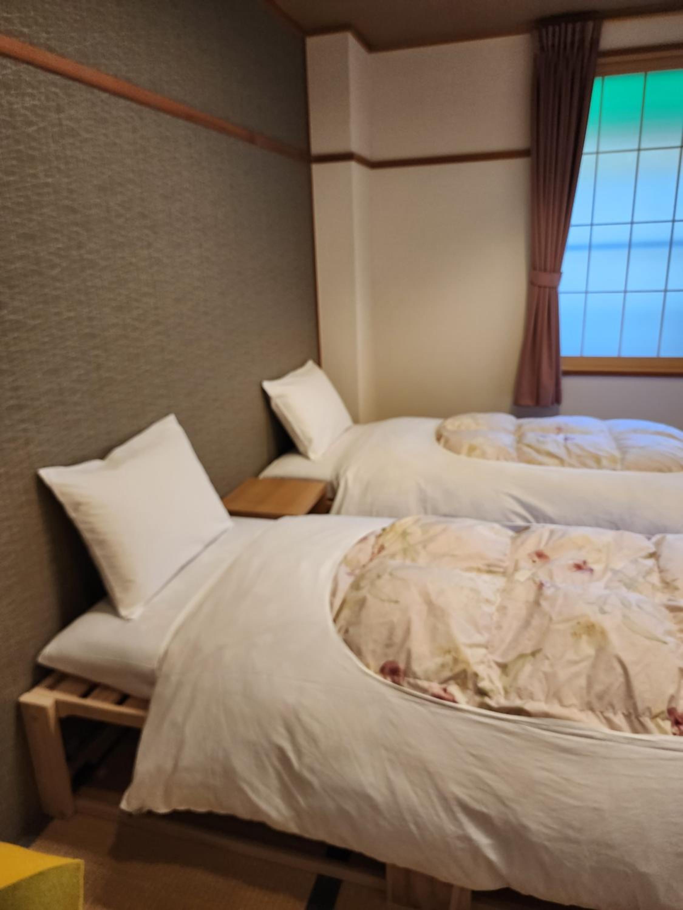 Traditional room with futons made sleeping a uncomfortable. Room was also hot and without option to cool it other than leaving window open.