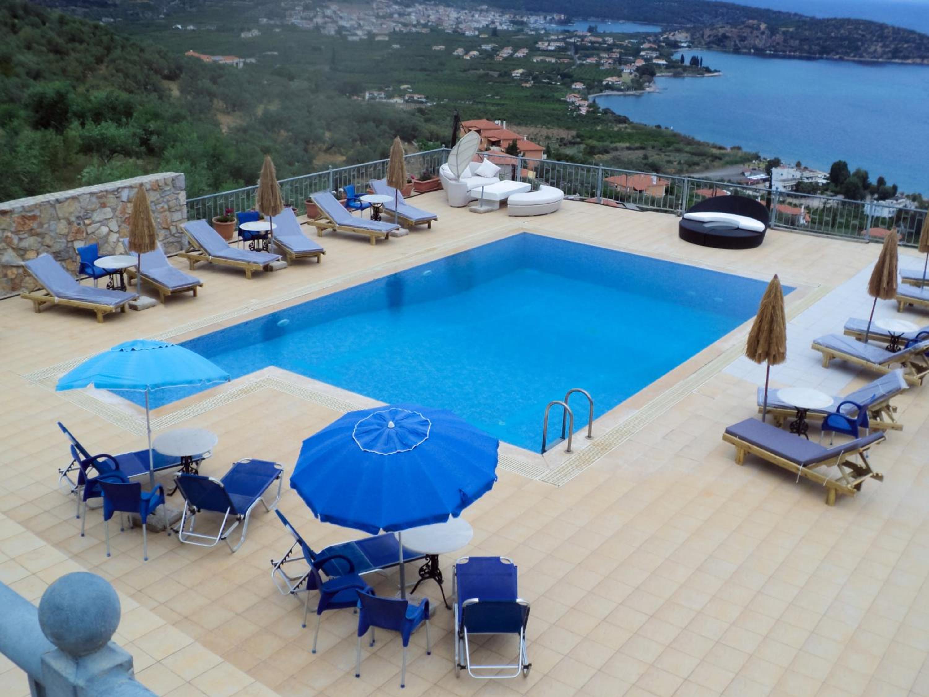 La vue est panoramique sur Epidaure. les extérieurs accrochent. Cadre joli pou la piscine (mais froide en fin de septembre)