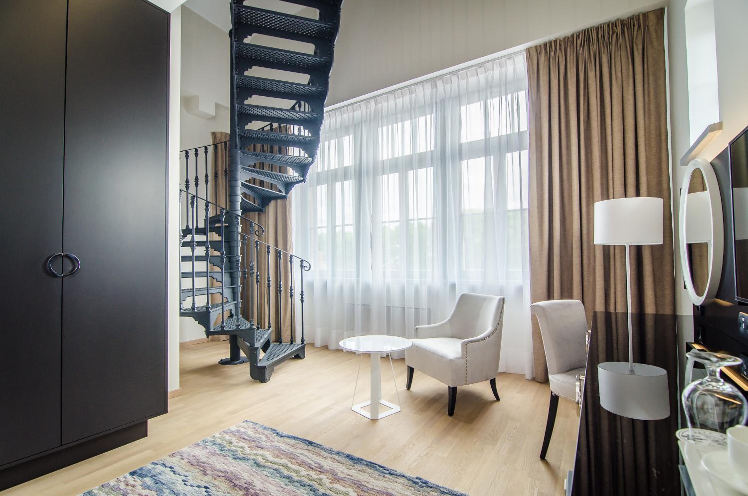 Luxurious Rooms with Modern Amenities: Enjoy a comfortable stay in rooms equipped with a flat-screen TV, smartphone with free international calls, and unlimited internet. Some units even feature a cozy seating area and a kettle for your convenience.