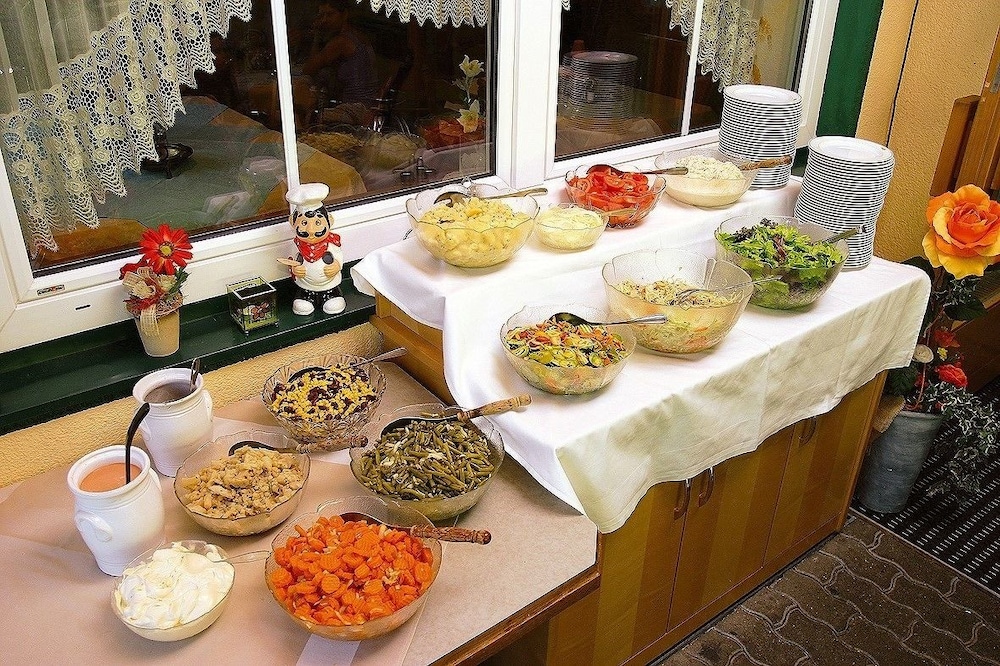 Wij kwamen later in het hotel aan dan gepland maar onderweg maar even gebeld dat we later aan zouden komen ivm de vele file`s vanaf Munchen tot aan Villach. Bij aankomst alle begrip en we konden ook nog gebruik maken van het restaurant. Verder alles super vriendelijk en netjes. De kamers (2) waren in orde al kon de douche wel een kleine opknap beurt gebruiken. Het ontbijt was ruim voldoende en de koffie goed van smaak. jammer dat er geen roerei was.