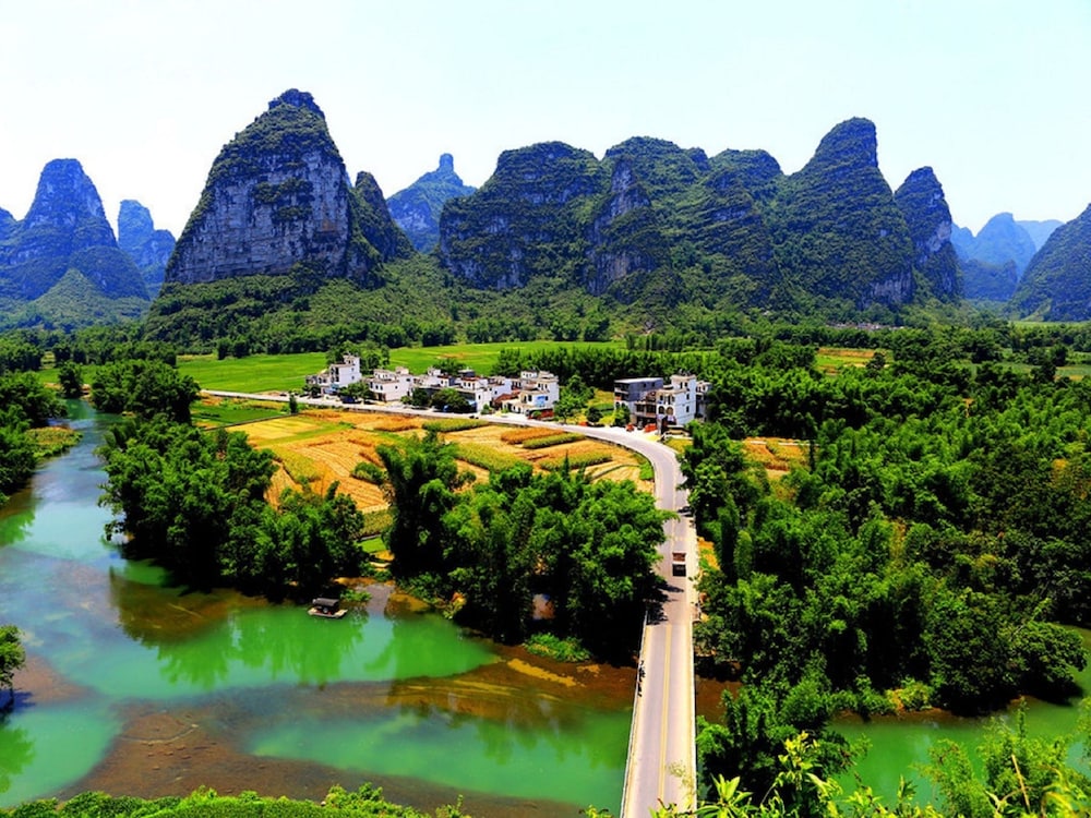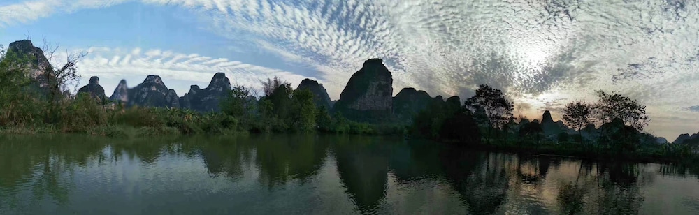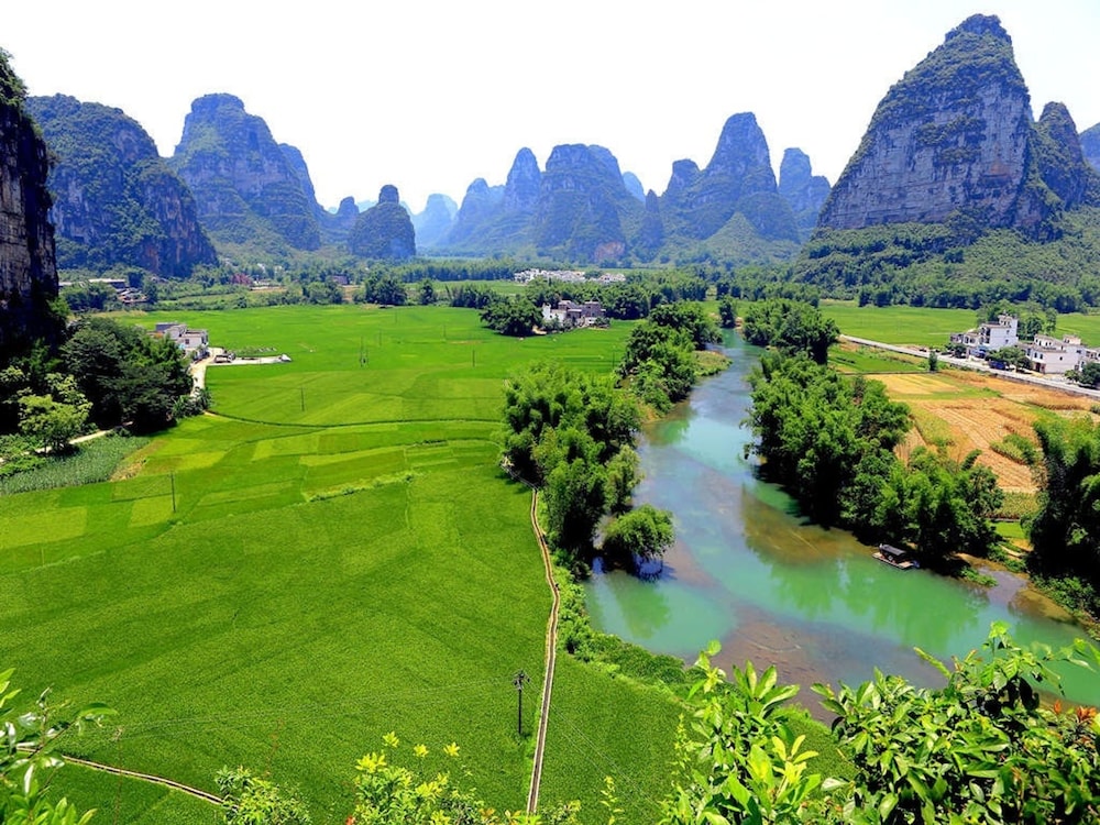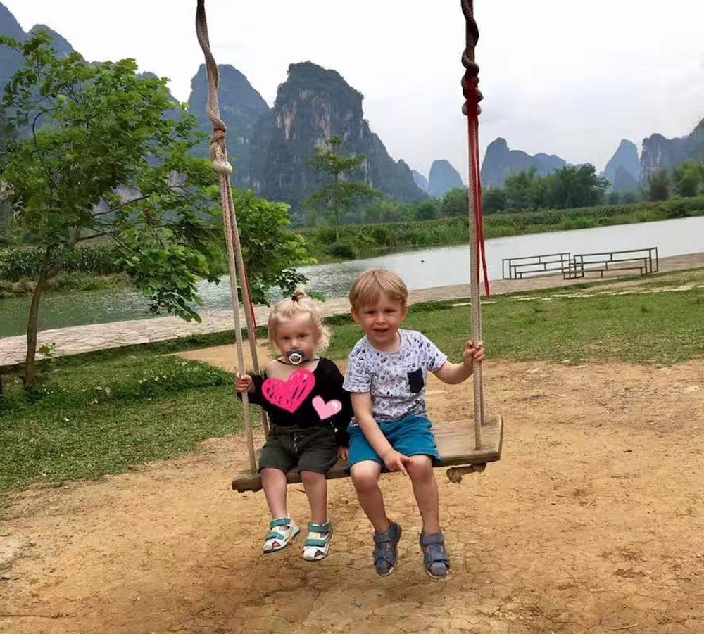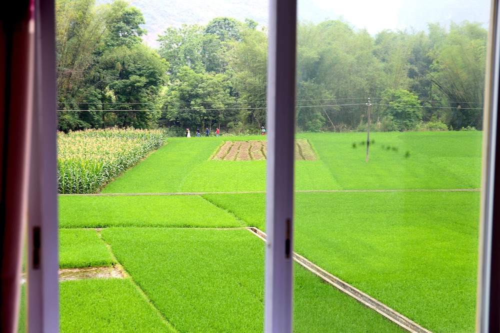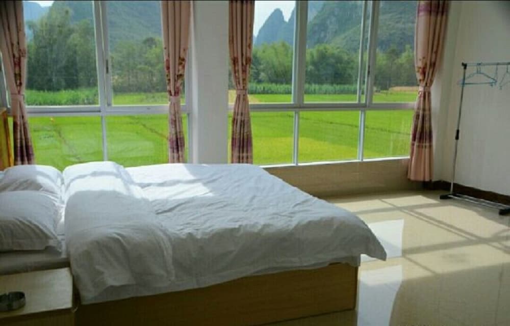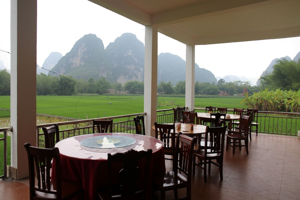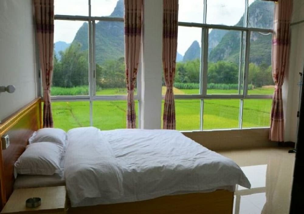 Wir hatten ein großes Zimmer mit wunderschöner Aussicht auf die Karstberge. Die Ausstattung ist sehr einfach, das Bett nicht wirklich bequem. Chinesisches Frühstück mit Nudeln und Ei. (Plastikgeschirr) kein Kaffee. Zum Abendessen sind wir ins Restaurant nebenan, sehr lecker. Zu empfehlen ist eine Radtour. Der Bootstrip (hinter dem Haus) hat uns nicht gefallen. Lieber einen am Black River machen.