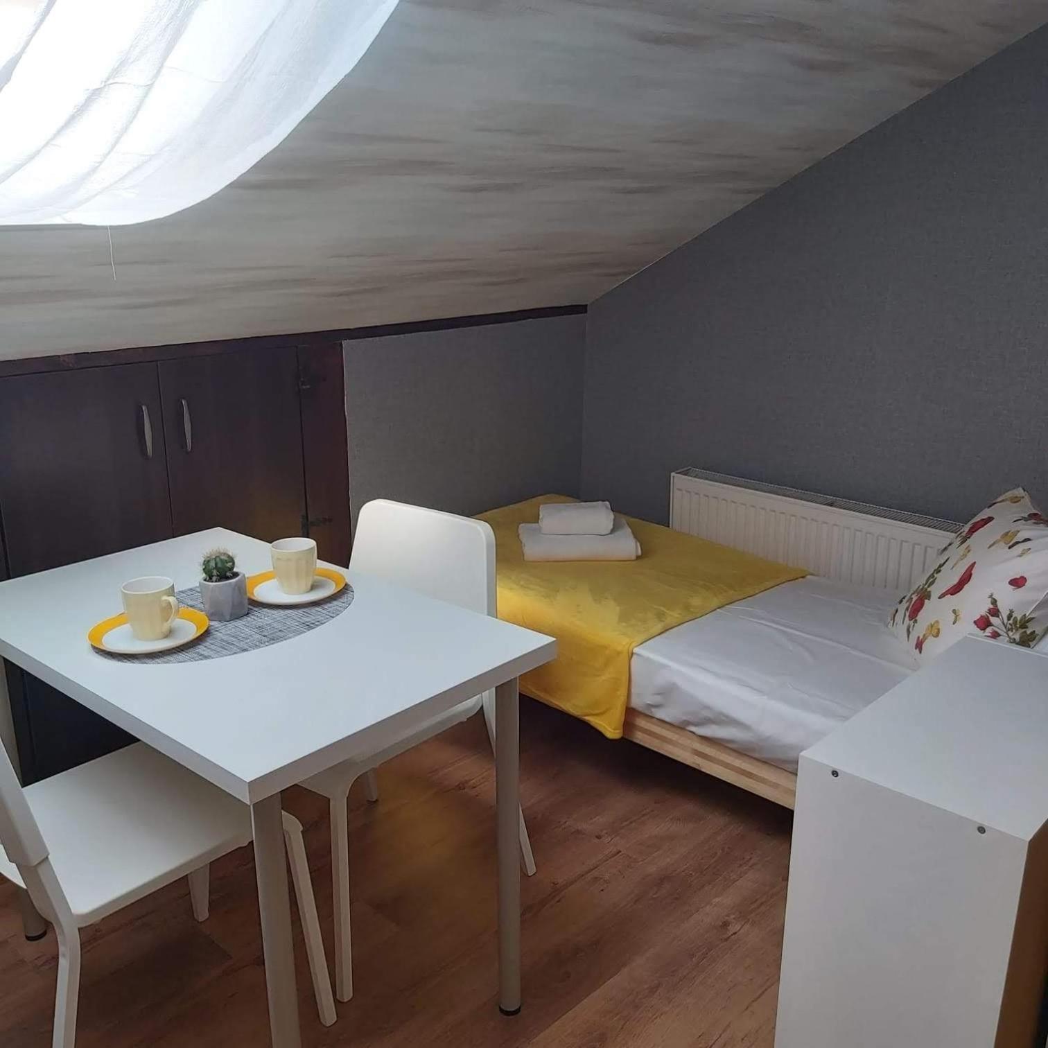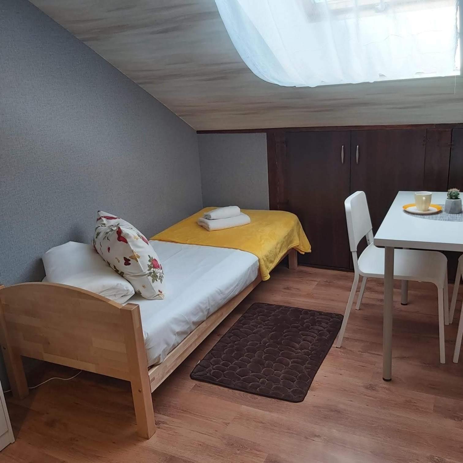 The bedroom was clean and cosy, although a bit narrow: it was way better than the first impression you get of the hotel (people living with doors open, the place looking like 50 years ago - and not in a good way). The receptionist does not speak English but was very nice and helpful, and we managed to solve little issues with our reservation using Google translate. If you come by car, be aware: there's no free parking in this area of the city, and you'd better park directly in front of the hotel (you can go through the road fences) for reasons of safety. The hotel is very close to the market halls, and just across an evening outside market in summer, so even if you arrive late you can purchase fruits and berries.
