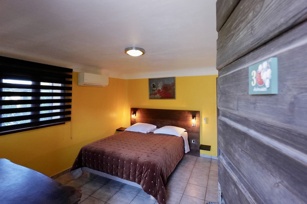 En effet, la chambre ressemble à une cave aménagée avec une petite fenêtre (loin des baies vitrées des photos des autres chambres). Le mobilier de la chambre est totalement vétuste.. Elle comprend notamment une literie d'un autre âge. La propreté est plus que douteuse. La SDB est un cagibi ou il faut se contorsionner pour y rentrer. Les prises électriques ne tiennent plus dans leur support.....Enfin cette chambre (la numéro 4) a été aménagée entre les cuisines de l'hôtel et le restaurant ce qui nous permet de suivre jusqu'à une heure avancée de la nuit, les discussions des clients qui dînent....