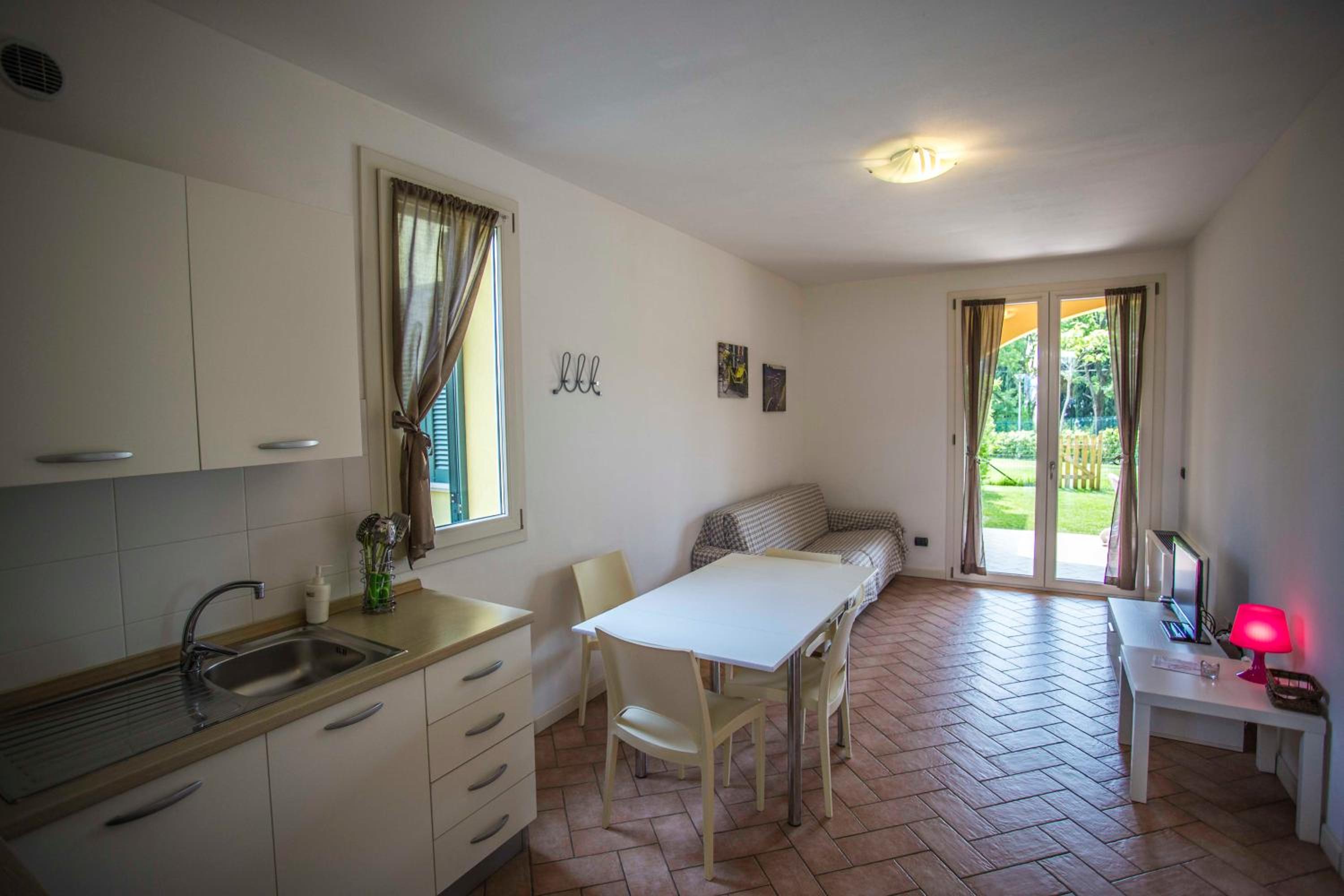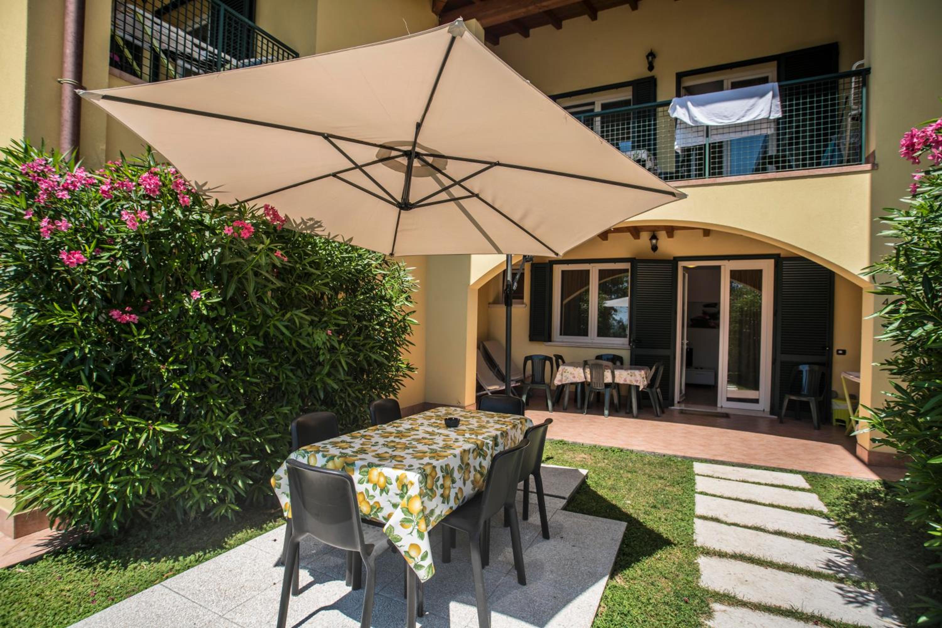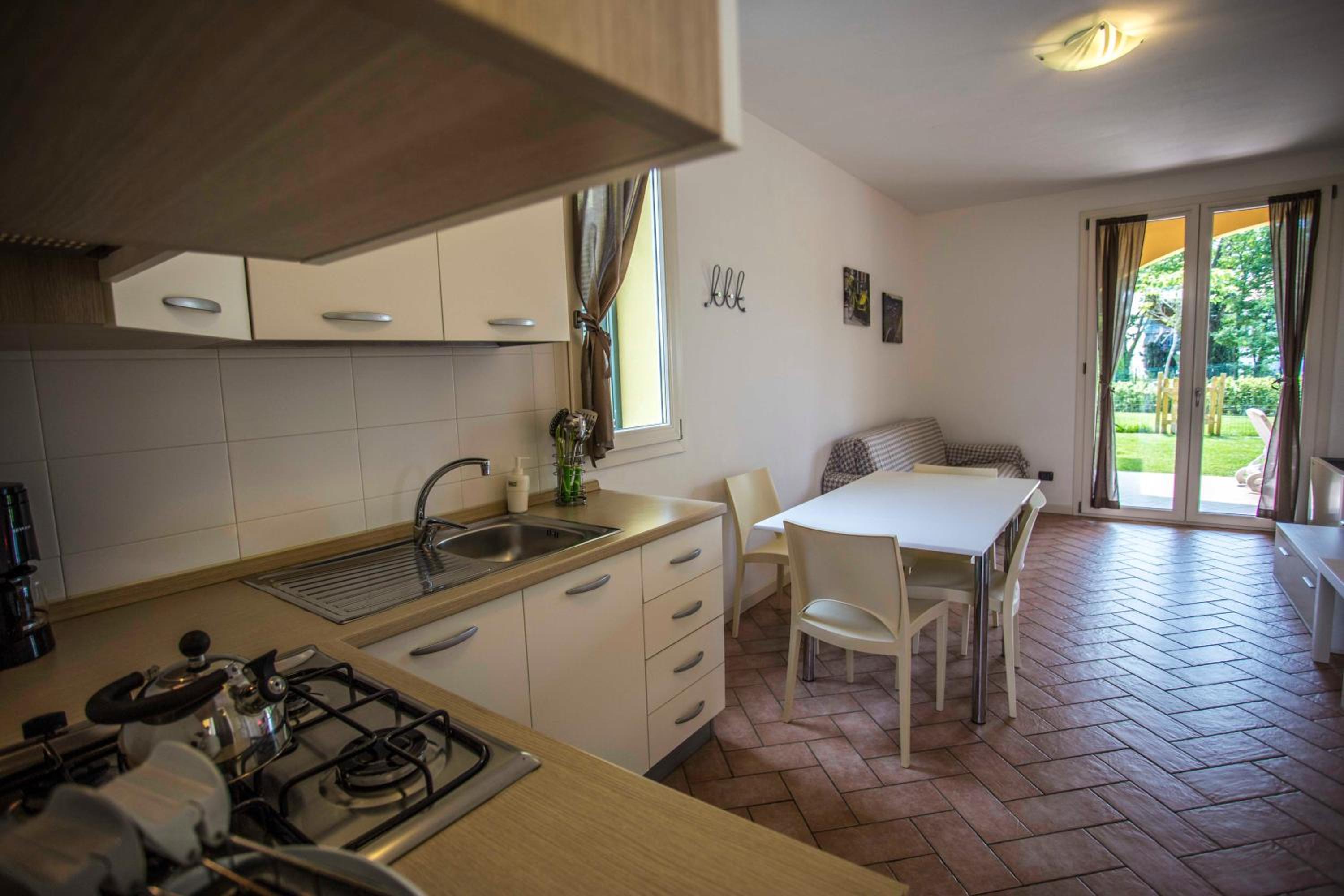 Besonders ideal für Hunde, die Appartements im EG haben alle einen eigenen und eingezäunten Garten. Wir sind morgens schon um 8 Uhr angekommen und konnten schon kurz darauf ins App.