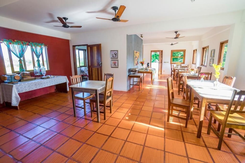 Local da pousada bem aprazível. Quarto com tamanho razoável. Cama tamanho "Queen" não existe. Falta tela anti-mosquito nas portas e janelas. Banheiro com apenas meia porta no box. Lixeira do banheiro com sinais de umidade no fundo. Precisamos pô-la no sol da varandinha. Uma funcionária de serviços gerais também atende no refeitório. É prestativa e muito solícita. Os gestores da pousada também atuam no dia a dia do negócio. São jovens, prestativos e atenciosos. A pousada estava bem vazia, sem outros hóspedes. A academia, bem pequena, é disponibilizada para o público externo. A conversa dos clientes da academia interferia no silêncio. Café da manhã satisfatório. Estacionamento sem cobertura, vagas ao ar livre. No geral, a pousada necessita de uma manutenção mais assertiva.