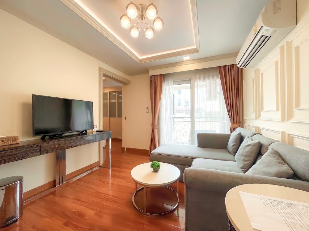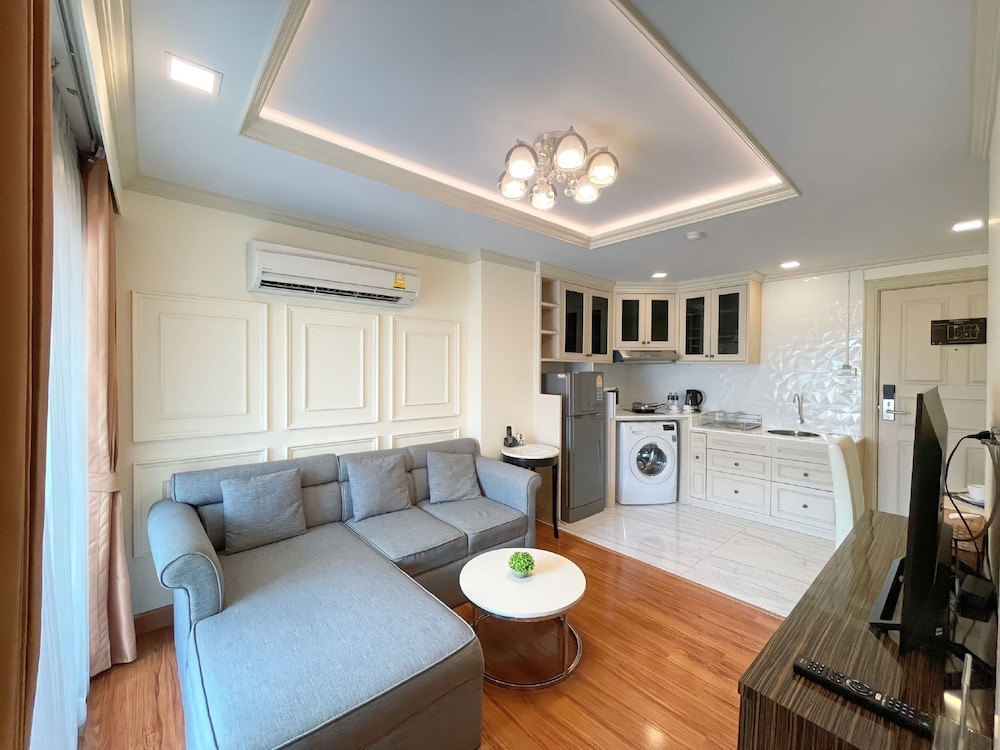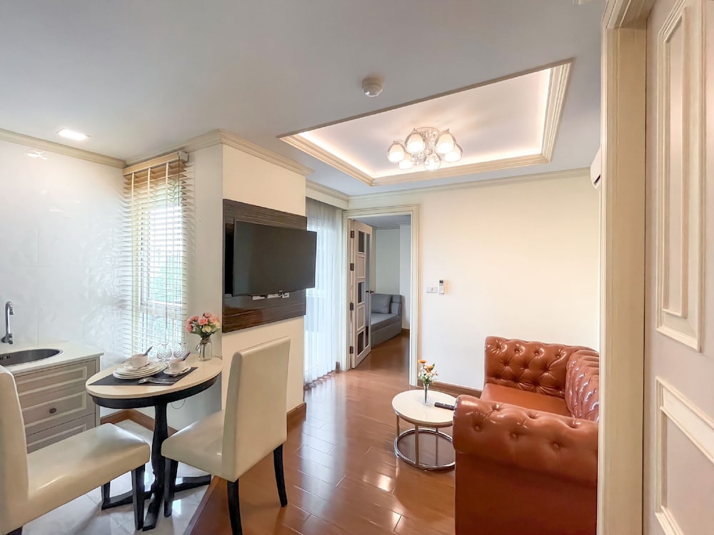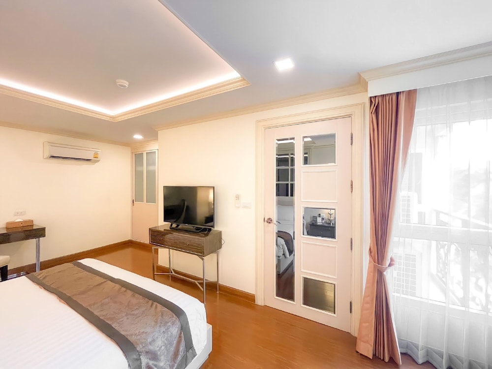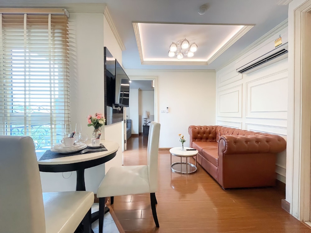 It's not too far from the main street. BTS is a bit far by walk, but can do it. I had to change room because there was no hot water in the shower. 2 aircon in the room is great. Sofa is not the nice leather one I saw on the photos, more like an old dirty sofa with crumbs in the cracks.