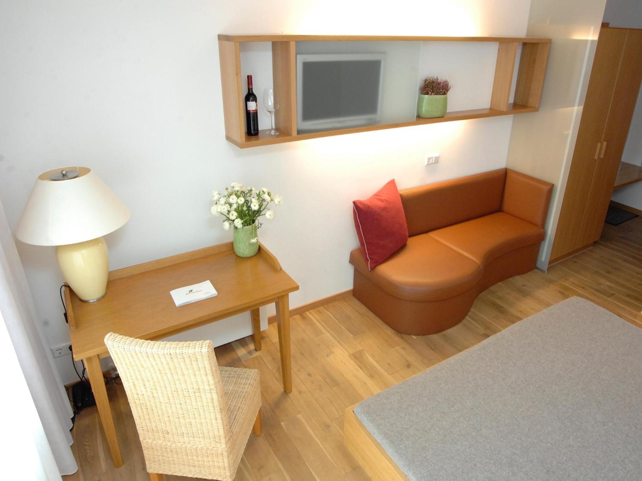 Wir hatten ein Zimmer im alten Teil des Hotels, trotz Fotos des neuen Zimmers. Schade, dass zusätzlich Tagesgäste im Wellnessbereich sind.