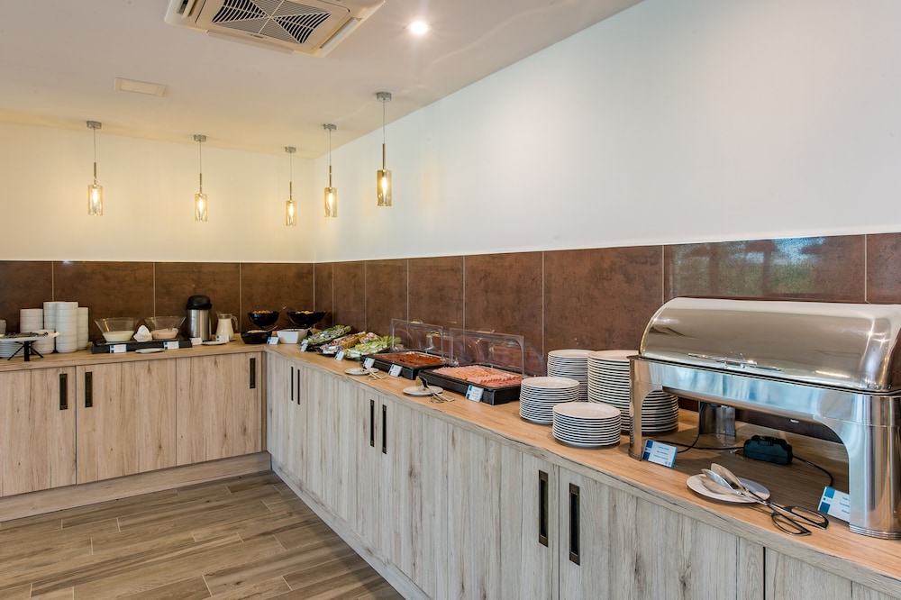 A hotel maga, alvásra, ott tartózkodásra tökéletes volt. A személyzet nagyon kedves. De ez nem segít azon a tényen hogy bár biztos finom volt a kaja amit kaptunk volna, az étterem nyitvatartási idejének első órájában MÉG nem volt választék, másnap másképp mentünk, az utolsó egy órában, ekkor MÁR nem volt. Hogy mikor lett volna, azt nem tudtuk meg. A fürdésről nem is beszélve, sehol sem említette a hotel oldala sem és ez az oldal sem, hogy csak egy uszoda van mellette ahova kizárólag úszósapkában léphet be mindenki. Ezt persze adnak ha nem hoztunk, pénzért. De ki akar sapkát húzni azért, hogy pár órát a jacuzziban töltsön? Mi nem.