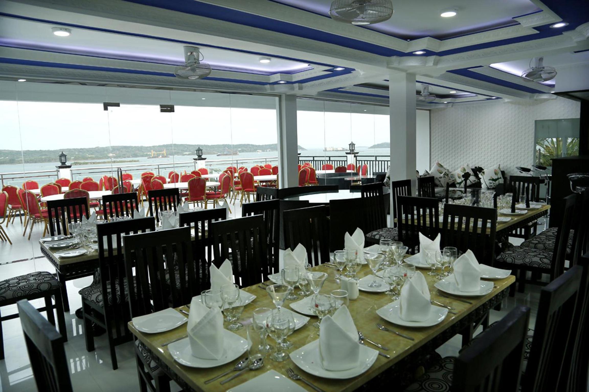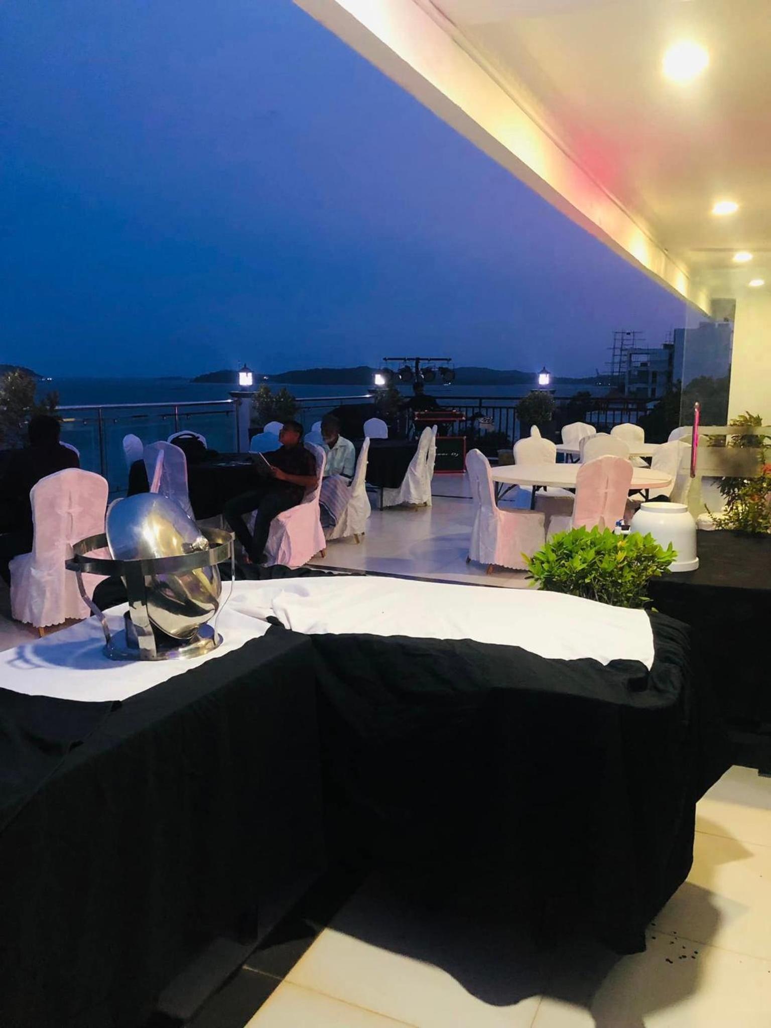 Rooftop dining and unexpected Trincomalee harbour view.