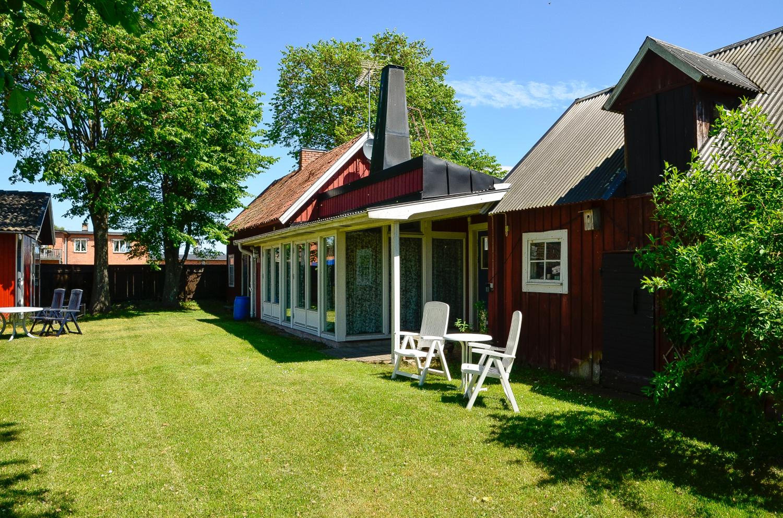 Underbar trädgård med pickande höns det var så pittoreskt. Hemtrevligt vardagsrum där man kunde fixa lite mat i köket.