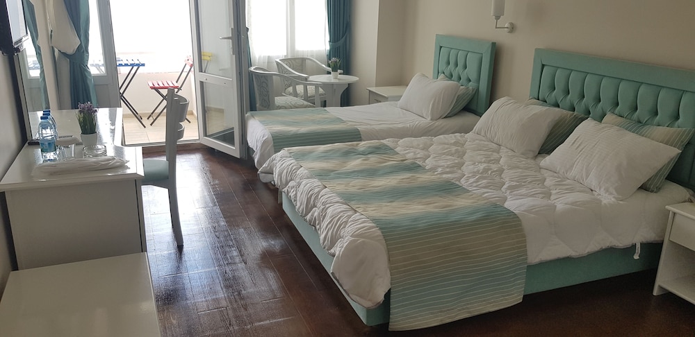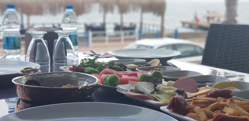 Bölgede plaj hizmeti sunan baska bir otel bulamadığım icin bu oteli seçmistim. Ancak otelin Turizme hizmet için degil de ticaret olsun diye işletililiyor olduğunu düşünüyorum. Kahvaltı sabah 9 da başlıyor! 11 de biter yazıyor ama 10:40 da kazanda çay kalmamıştı. Plajda Türk kahvesi istedim; 15 TL yazıyordu, fiyatını bilerek istedim ama yanında su servis etmediler. Gün içinde su basıncı sürekli düşüyor, son gün kahvaltı sonrası duş alamadan ayrılmak zorunda kaldım. Duş başlığı hortumu o kadar deforme olmuş ki suyu yukarıda çok aşağıya kaçırıyordu.