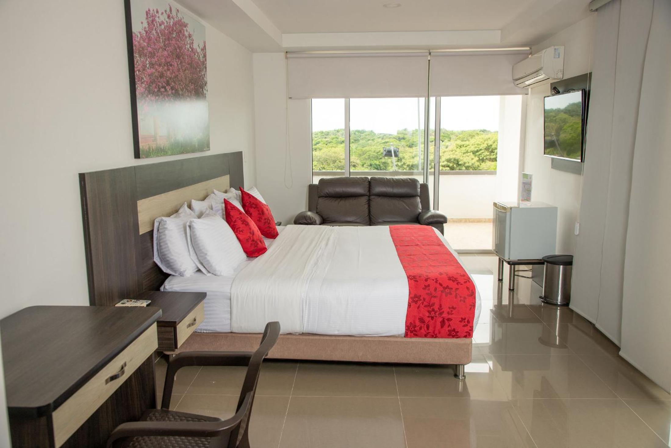 Hotel Anamela in Maní offers a perfect blend of luxury and relaxation with a terrace, water sports facilities, outdoor and indoor pools, sauna, and a shared lounge. Each room is equipped with modern amenities including air conditioning, a balcony with city views, and a flat-screen TV.